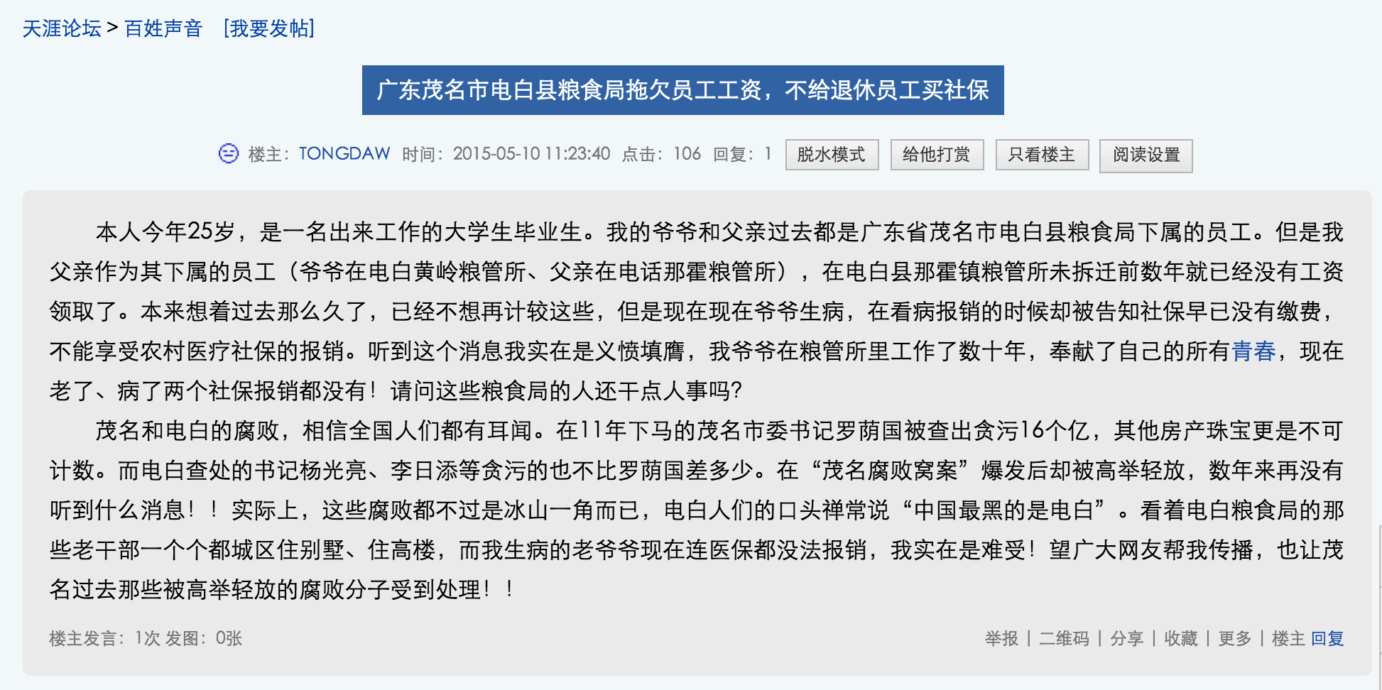 QUOTE(孔子老婆 @ 2015年10月23日 Friday, 08:47 PM) 这次删帖的速度真快,铁板已融化! [snapback]3779888[/snapback] 首次见识电白政府或其它人的光速办事效率,令人咋舌。(超级黑客出击?)