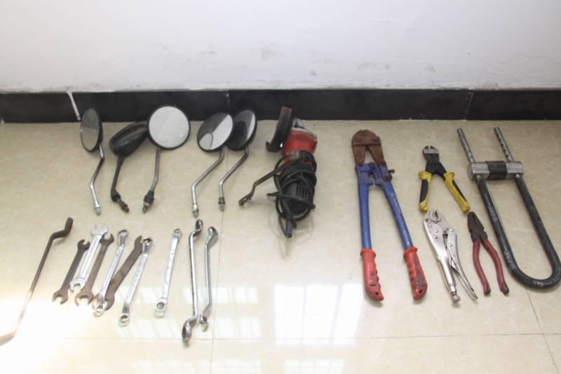 11月9日下午14时许,侦查民警掌握到该团伙成员邓某旭在电白区水东镇上排垌北路东苑宾馆出入,立即前往抓捕,在东苑宾馆802房将犯罪嫌疑人邓某旭(男,19岁,电白区陈村镇人)抓获,缴获涉案摩托车一辆。随后,民警在东苑宾馆附近蹲守,成功抓获该团伙成员黄某城(男,40岁,云南省人,有盗窃犯罪前科)和邓某添(男,15岁,电白县水东镇人)两人,缴获赃物摩托车2辆,并在摩托车座垫下搜出液压钳、螺丝刀等作案工具一批。经对黄某城租住的出租屋进行检查,民警搜出摩托车车牌8副(经核查,均有被盗记录)及作案工具一批。