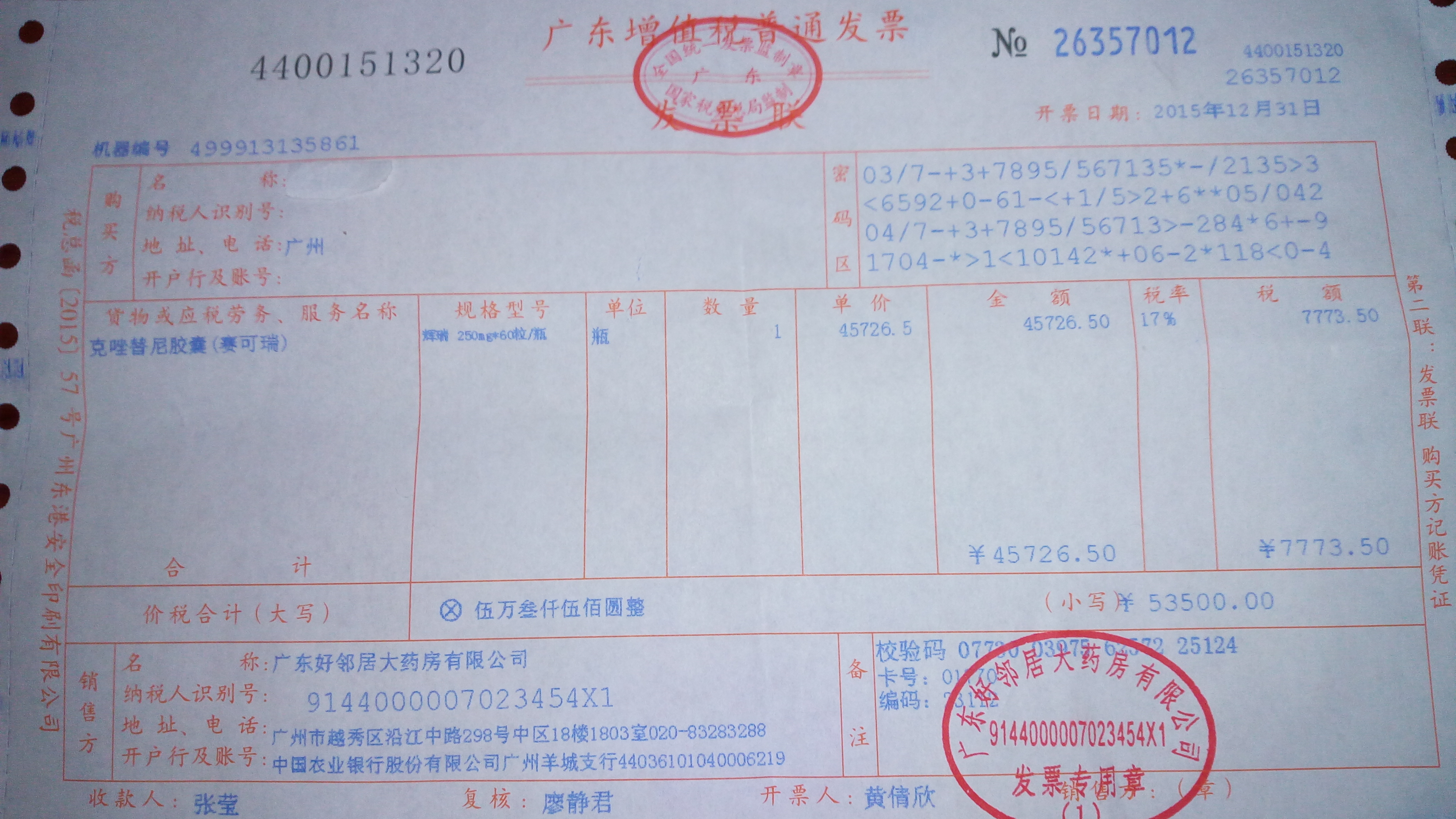 药商指着发票税款说: