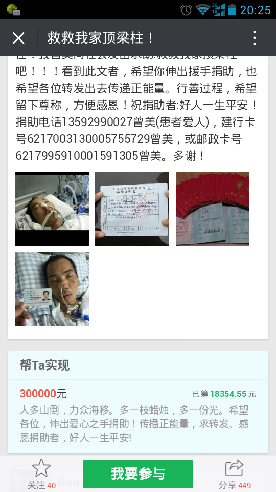 众人捡柴火焰高,请论坛的爱心人士帮帮他吧!感谢!