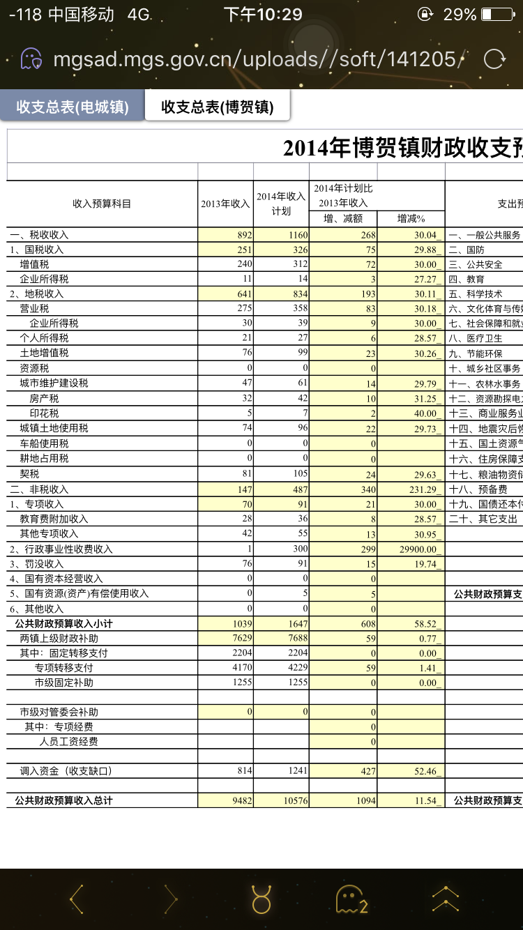 QUOTE(yanzide571 @ 2016年02月28日 Sunday, 08:06 AM) 这样的收支是计划的、预算的,不是实际的。若收入多支出也多,[例如中国国民总值也很高、但人均少],财政净结余多才是谁的底子厚,财政收入好、富有。 再有,两个镇挂的牌就不同,博贺镇是茂名市电白区的,结算也不同吧? [snapback]3791447[/snapback] 你再看看2013年度的就知道了,那个是实际收入,14年的才是计划