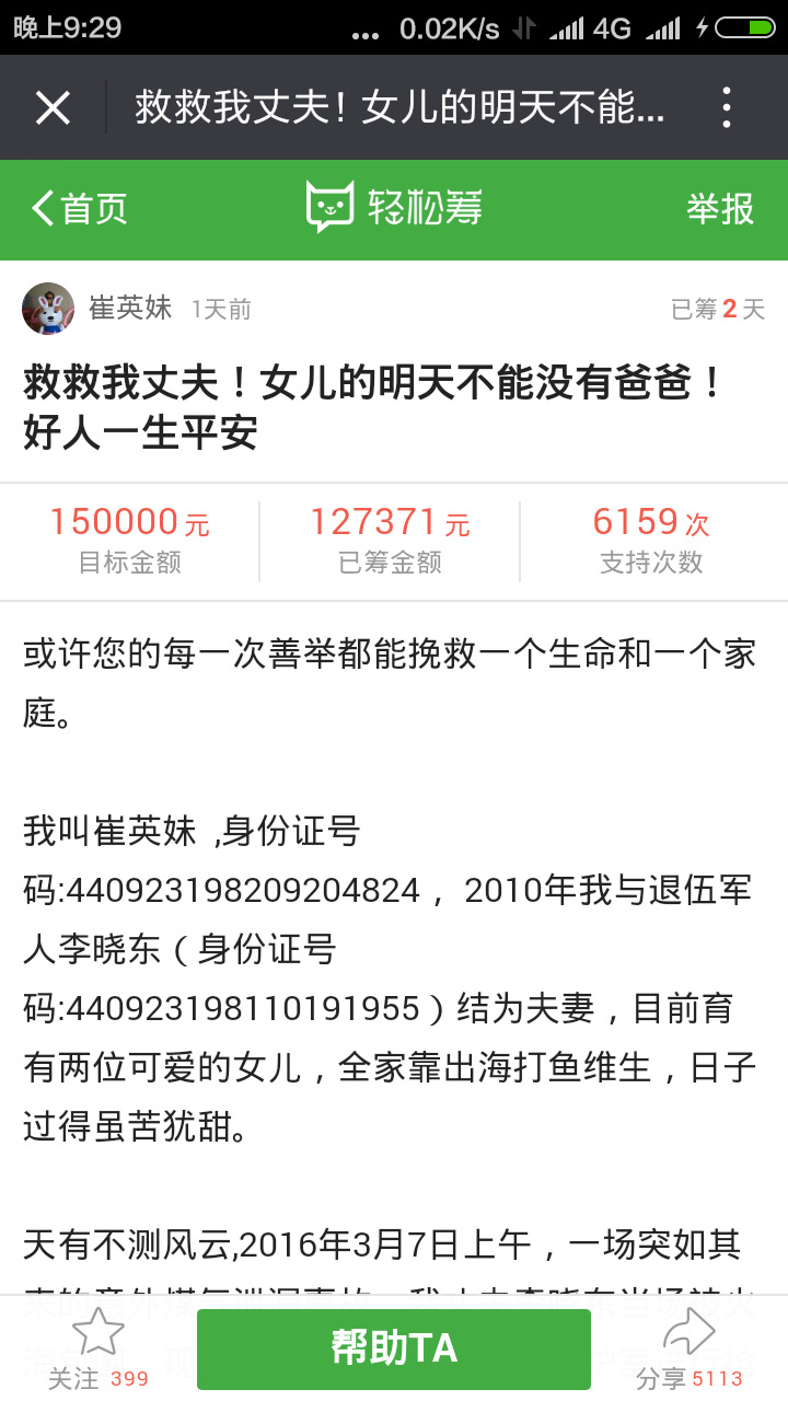 看到捐款的进度是很快的,昨晚11点多还是6万多,现在已经9万多了,有四千七百多人支持,一个军人品质受人尊敬。