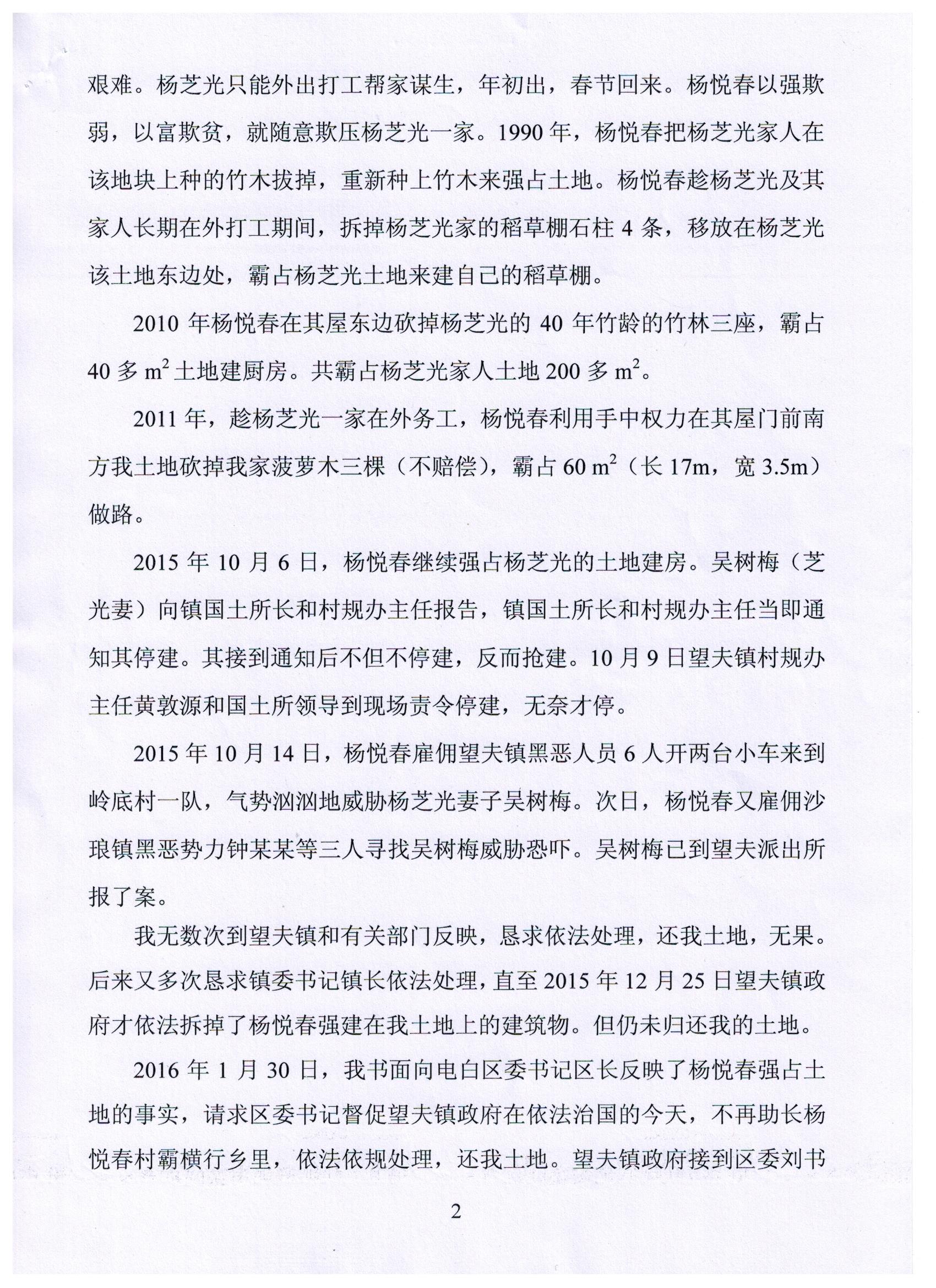要求望夫镇丰乐村委副主任村霸退还强占杨芝光的土地 (1人在浏览)