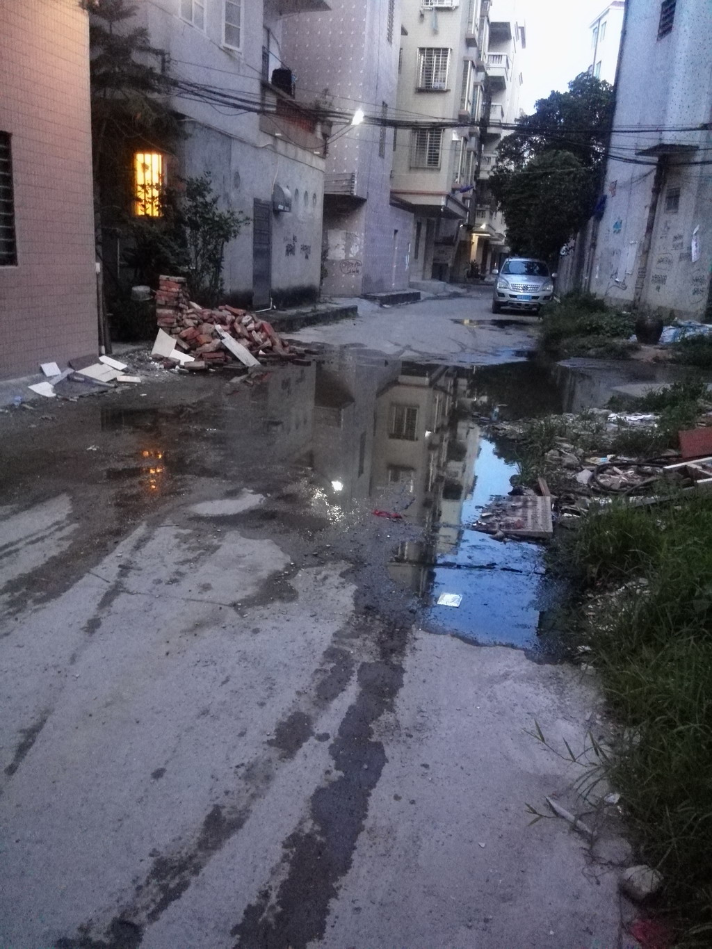 水东镇新湖一路的中国银行宿舍外污水横流、臭气熏天。 (1人在浏览)