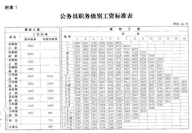 [SIZE=10.5pt]  1、职务工资标准由现行的340[/SIZE]元—4000元分别提高到510元—5250元;