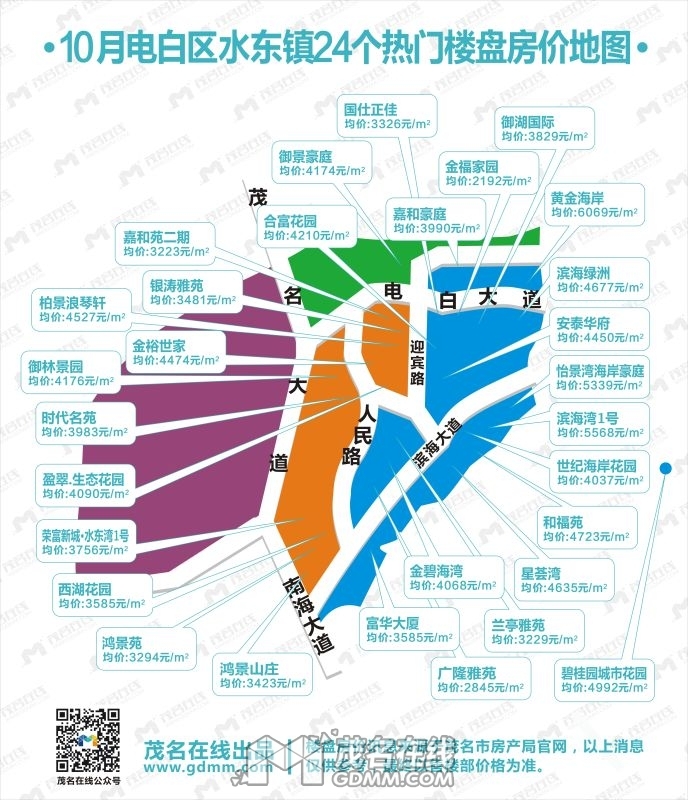 水东湾新城规划充分尊重水东湾水系汇聚、湾海通连的自然肌理,通过区域交通设施的建设、主导性发展空间的营造及现状用地功能的优化,使得水东湾新城逐步形成“一带、两环、五廊、五片”的空间发展格局。一带为滨海发展带,串联水东湾新城的高地片区、南海片区、旦场片区;两环分别为环水东湾的快速交通环和滨水慢行游憩环;五廊为自水东湾城市公园放射出的五条绿色通廊,分隔新城各片区。五片分别为陈村片区、水东片区、高地片区、南海片区、旦场片区。其中,[FONT='宋]陈村片区重点打造综合性城市中心区[/FONT];水东片区重点优化现有城区,高地片区重点建设高地智慧城,南海片区重点建设滨海旅游区、高端居住区、现代临港区,旦场片区重点建设宜居生活区。