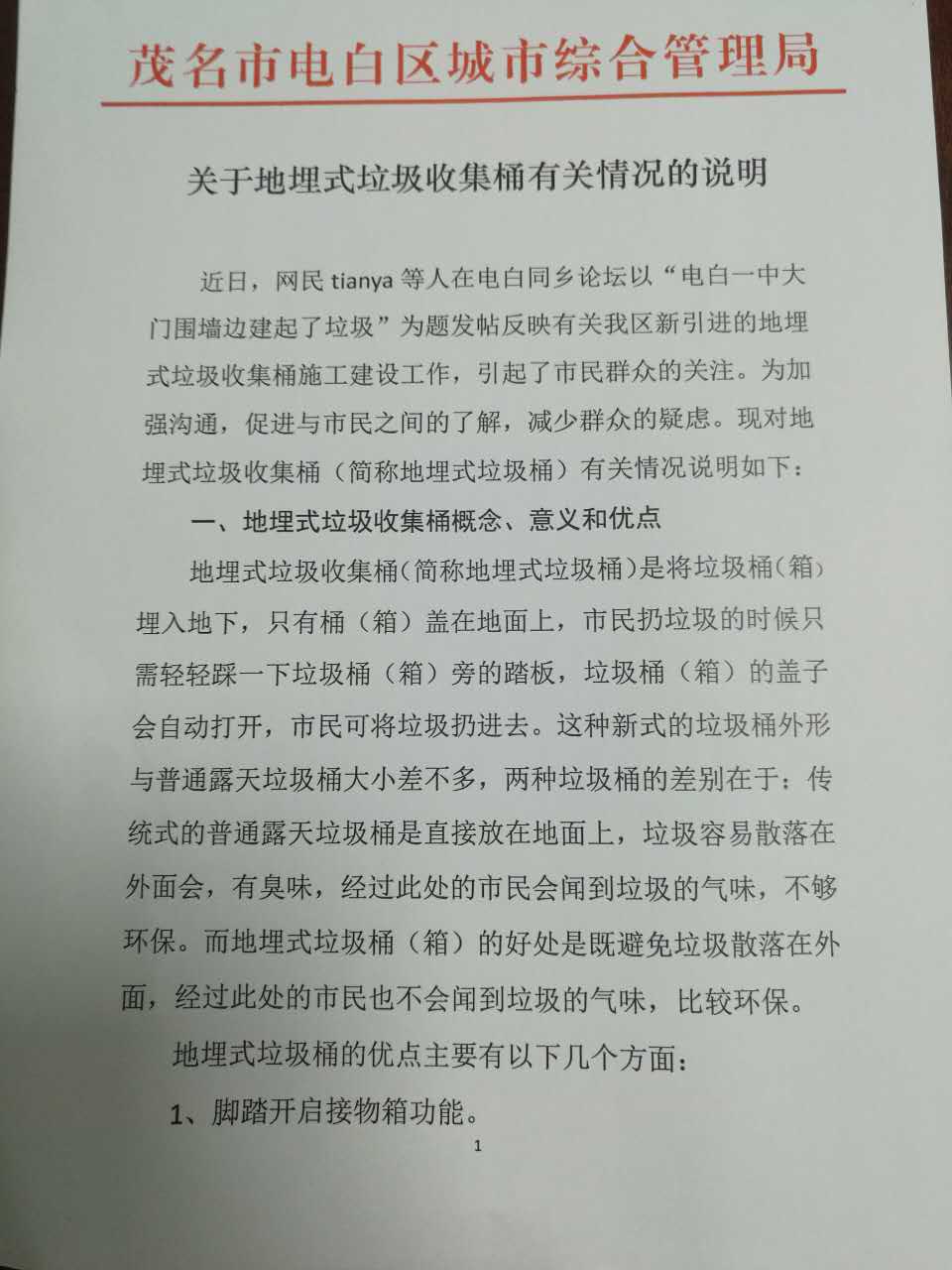 [SIZE=16pt][FONT='宋]地埋式垃圾收集桶(简称地埋式垃圾桶)是将[/FONT][/SIZE][SIZE=16pt][FONT='宋]垃圾[/FONT][/SIZE][SIZE=16pt][FONT='宋]桶([/FONT][/SIZE][SIZE=16pt][FONT='宋]箱[/FONT][/SIZE][FONT='宋])[/FONT][SIZE=16pt][FONT='宋]埋入地下,只有桶(箱)盖在地面上,市民扔垃圾的时候只需轻轻踩一下垃圾桶(箱)旁的踏板,垃圾桶(箱)的盖子会自动打开,市民可将垃圾扔进去。这种新式的垃圾桶外形与普通露天垃圾桶大小差不多,两种垃圾桶的差别在于:传统式的普通露天垃圾桶是直接放在地面上,垃圾容易散落在外面会,有臭味,经过此处的市民会闻到垃圾的气味,不够环保。而地埋式垃圾桶(箱)的好处是既避免垃圾散落在外面,经过此处的市民也不会闻到垃圾的气味,比较环保。[/FONT][/SIZE]