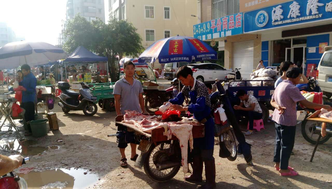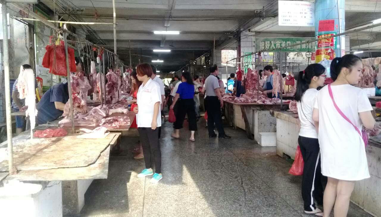 今天我天一亮就去春华学校后门菜市买菜,发现没猪肉卖,一问才知:整个三角圩地区今天屠夫们均罢市,原因是该地区肉联厂禁止屠夫们自宰生猪上市,必须到肉联厂批发猪肉销售,但屠夫们不愿意故集体罢市。惨了!今天市民餐桌上没猪肉了,不知明天如何。