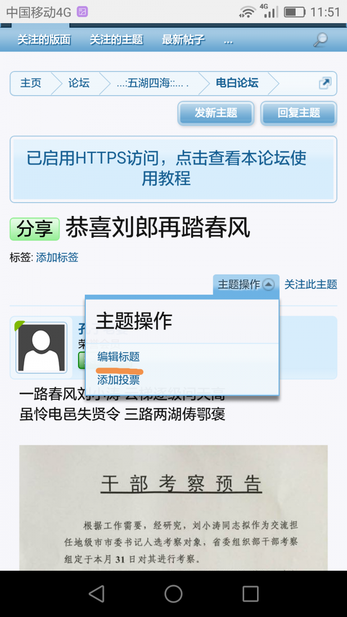 帖子的右上角那里有个“主题操作”,先点开。