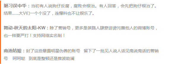 6月7日,北京市网信办依法约谈微博、今日头条、腾讯、一点资讯、优酷、网易、百度等网站,责令网站采取有效措施遏制渲染演艺明星绯闻隐私、炒作明星炫富享乐等问题。被约谈网站依法关闭“风行工作室官微”“中国第一狗仔卓伟”“名侦探赵五儿”等一批违规账号。微博公告称,根据《微博用户服务使用协议》、《微博社区公约》等法律文件和社区规则,对存在严重编造传播谣言、诋毁他人名誉的19个低俗追星账号予以关闭。[/FONT]