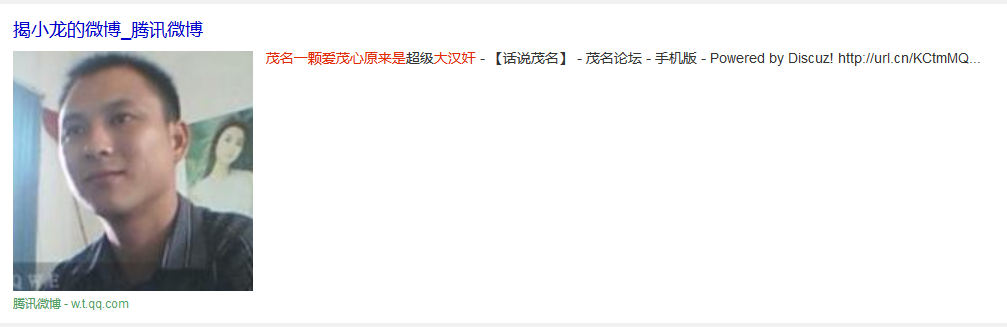 今天下雨天,闲着没事干,度娘了一下“一颗爱茂心”这个网名,矮油,原来此君对茂名的那个叫P什么项目做出了杰出贡献哦.