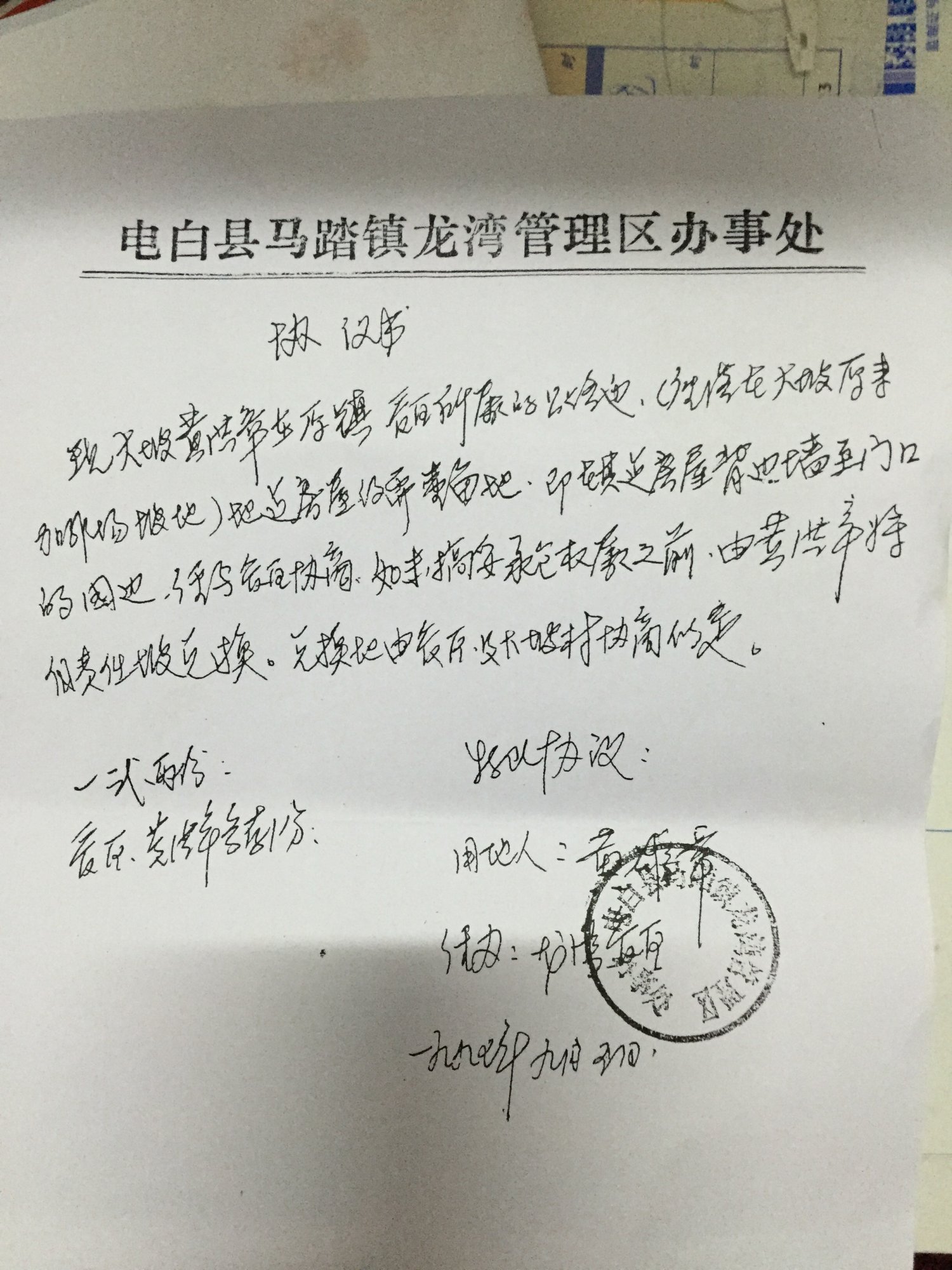 到了信访局了,但是被退回来马踏镇上了,直至今天镇政府也没有给村民一个答复,哪怕一个安慰都没有给村民。村民们需要的是为人民的人民政府!