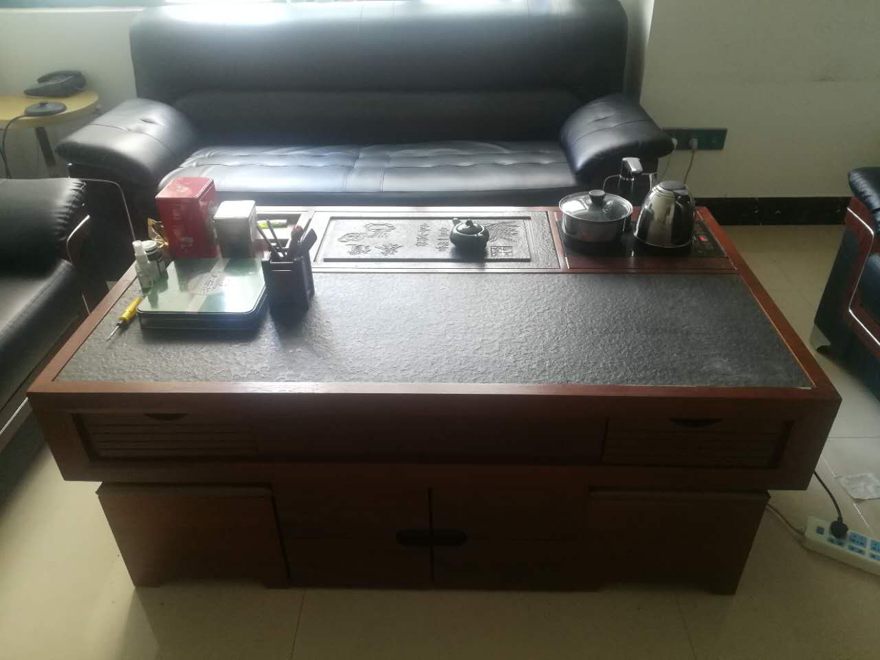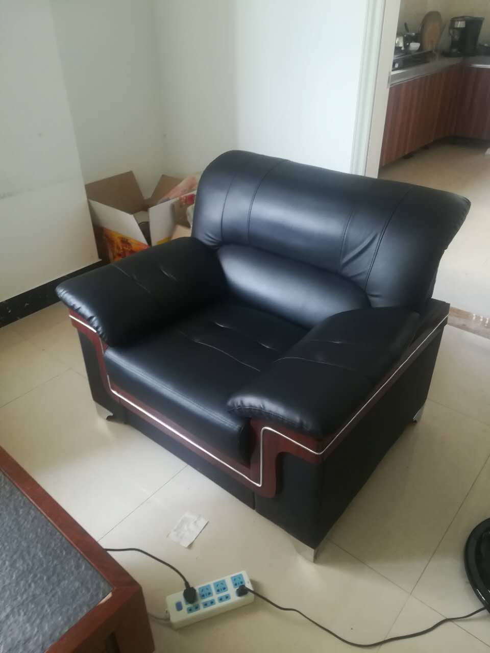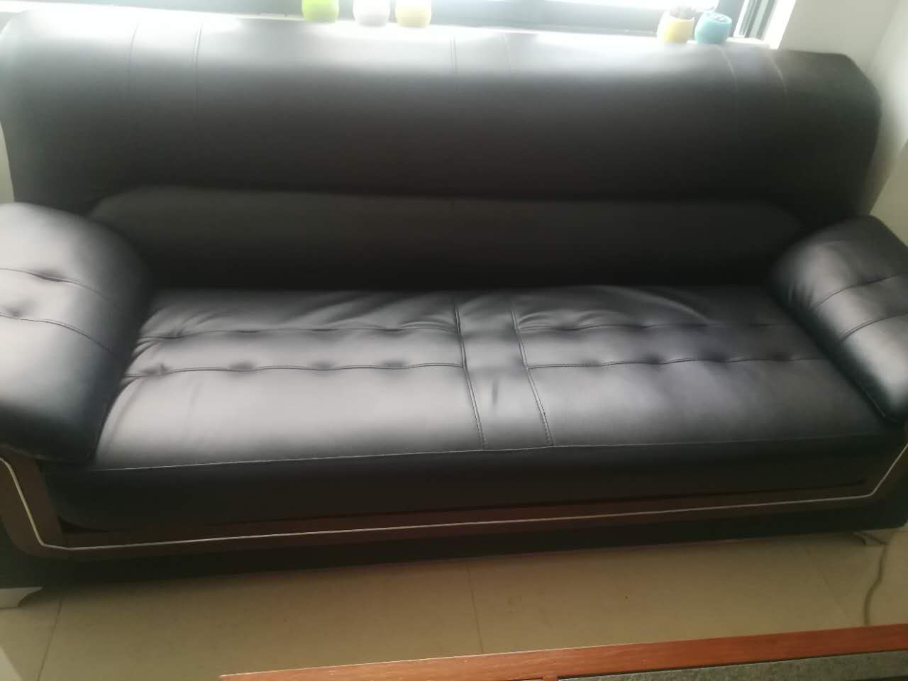 办公室用皮革沙发(3+1+1)和茶几组合,17年4月份购买,还有9成新,因重新置换,现低价转让,物在水东,需要的致电18218690686(梁)
