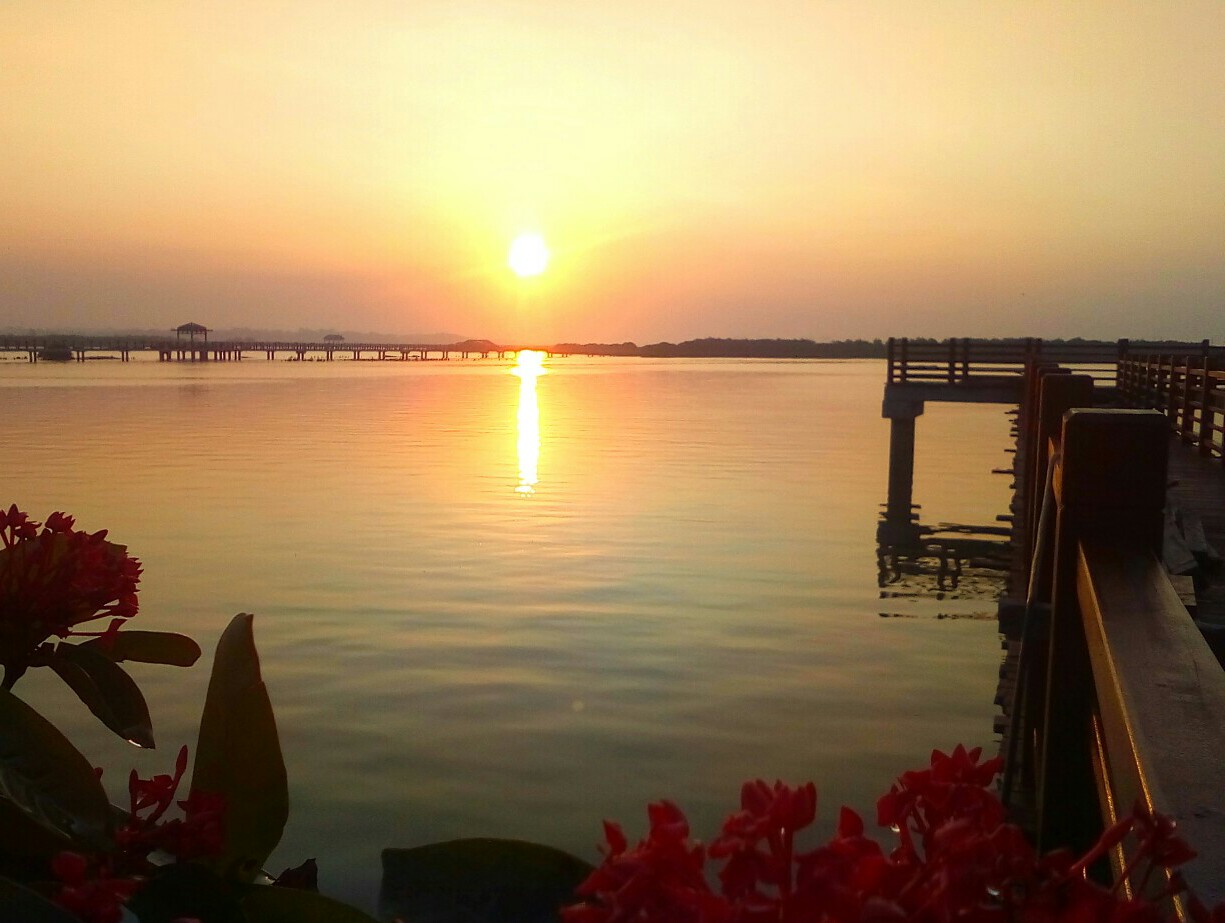 下图为傍晚退潮(不过傍睌没站在栈道只在绿道,也有点反光:ku: