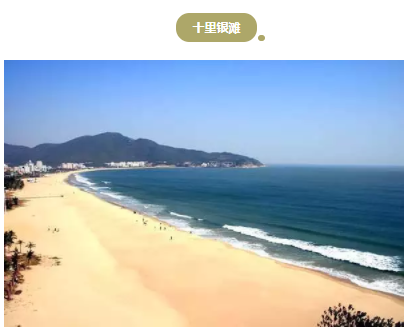 “南海旅游岛·中国第一滩”地理位置优越、交通便利,面积6平方公里。“中国第一滩”主要景点有: