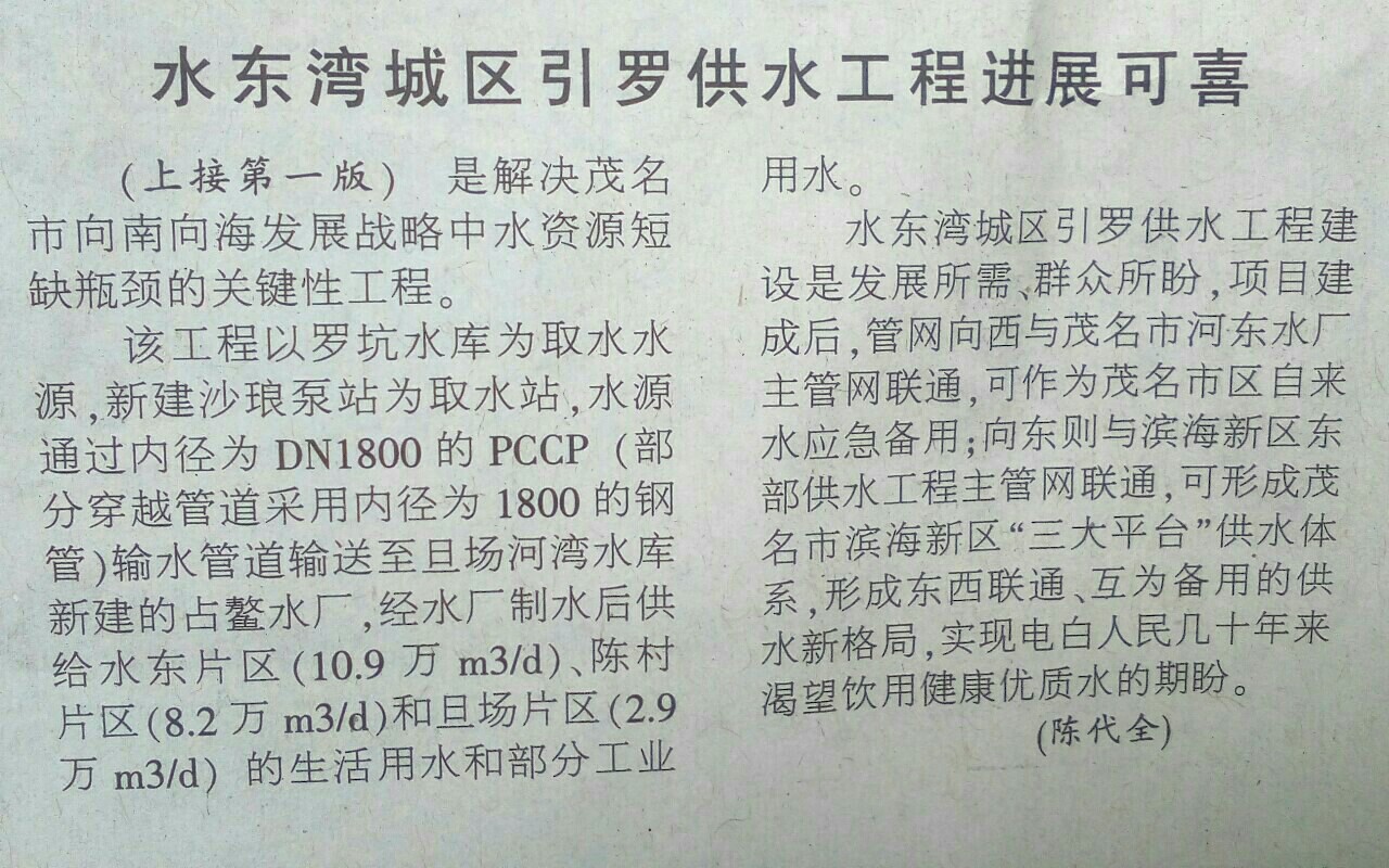 其他 报刊:水东湾引罗供水工程~ (2人在浏览)