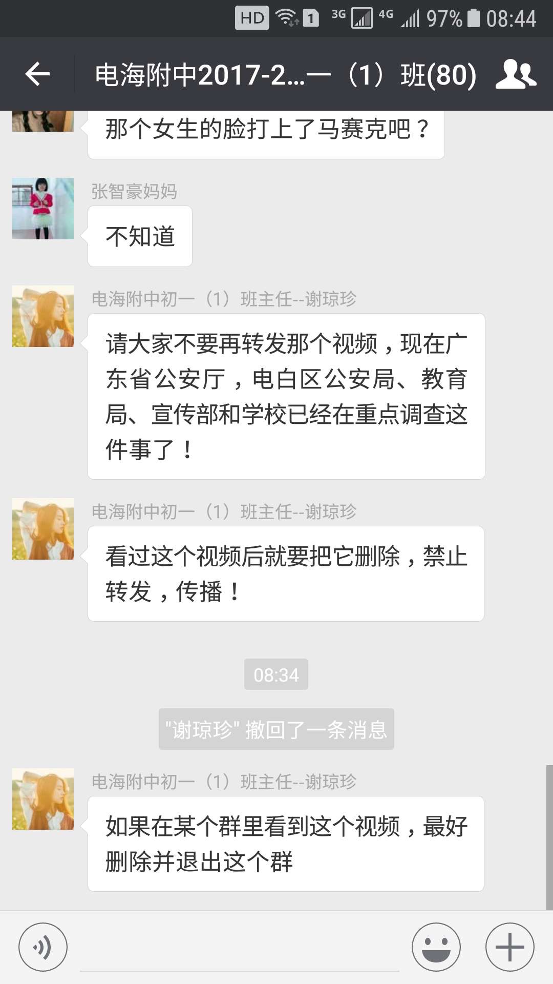 感谢一位在教育系统有资深经历的同乡和坛友给我发来信息,告知区教育局已经在认真处理此事。 据述,昨晚区教育局领导召集部分人员到电海附中跟进事情发展。梁局重视并组织区教育局有关干部做了若干工作:一是第一时间派出心理教师安抚被欺负女生;二是请求区公安局立案调查;三是启动问责机制,追究相关责任人责任。因为电海附中是民办公助学校,问责还待进一步处理。 就此事,我还是希望区教育局、宣传部及其他部门能及时向社会公开事情进展。本着以保护受害学生、惩戒施害学生和建立健全相关制度的原则和态度,及时处理此次事件。