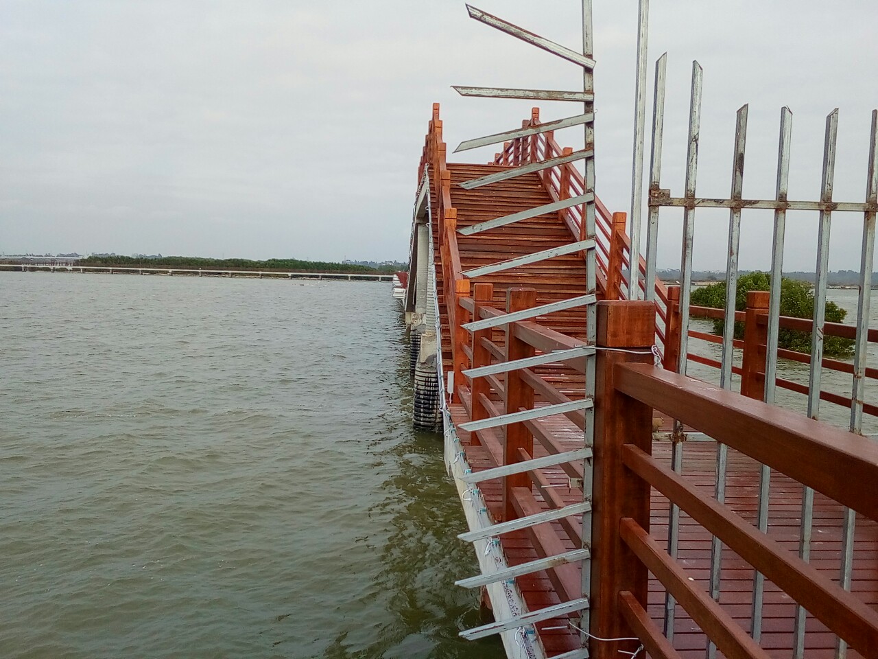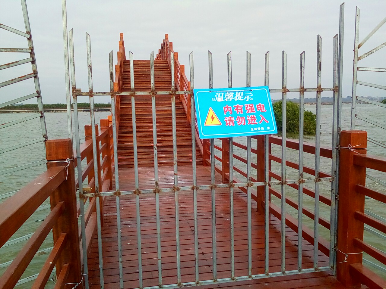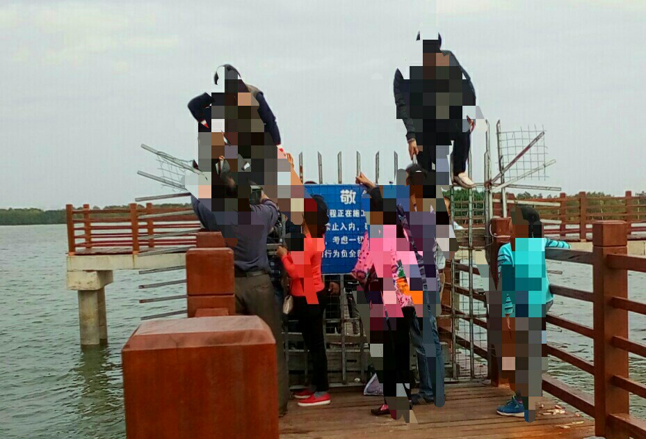 今天又逛下栈道,发现亲水平台正中间直入红树林的原先是封闭的临铁门开启了(不知是它人所为或其它),我也顺着人流进入到红树林,向左走见到那灯光景布点有一临铁门临封闭,又往回走,走了好长一段,也到那靠近亲水平台位置,又见在一铁门封密,或许有些人见走了这么长栈通,不想往回走,就勇敢的翻爬铁门过去,貌似很危险,但请相关部门关注或及时处理(诂栈道还没完全开通,如实就应及时派人关闭直入红树林那道门,如暂开通就应开启近亲水平台那道铁门,防范有人不想走回头而攀爬过去)