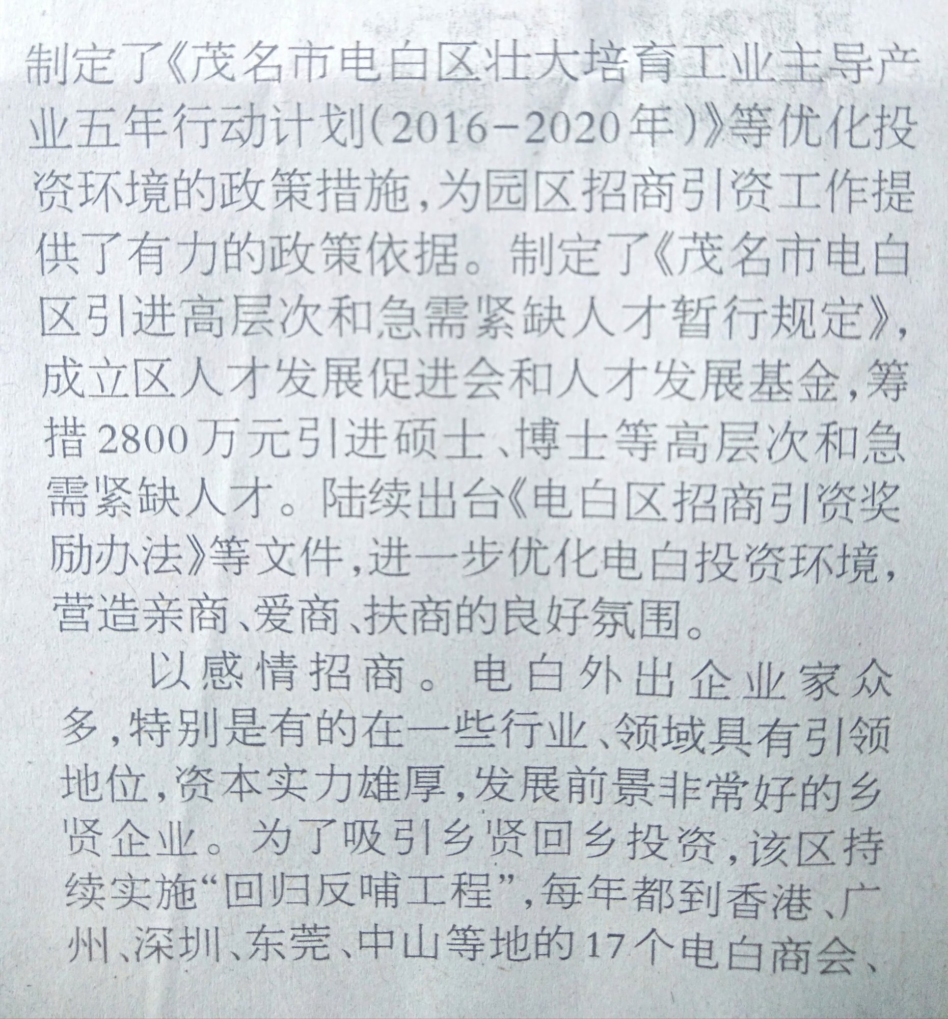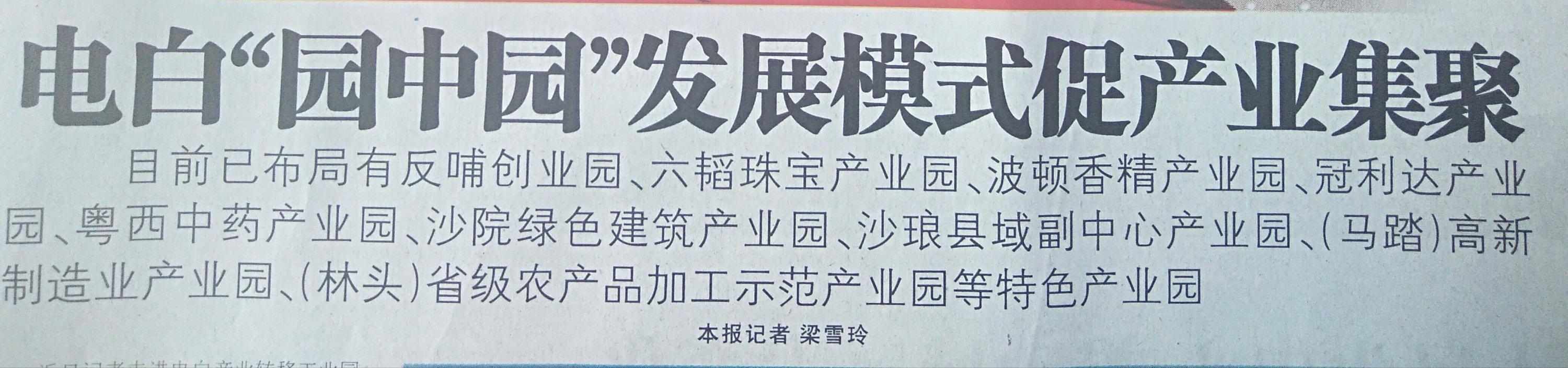 其他 报刊:电白”园中园”发展模式促产业集聚 (1人在浏览)