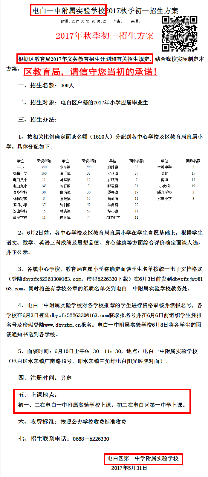 且不问变成了“电白一中附属实验学校”后,为何不办初中了。