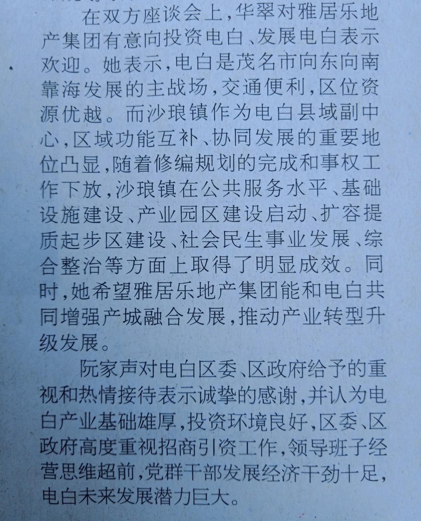 其他 报刊:雅居乐地产集团再次到电白考察 (1人在浏览)