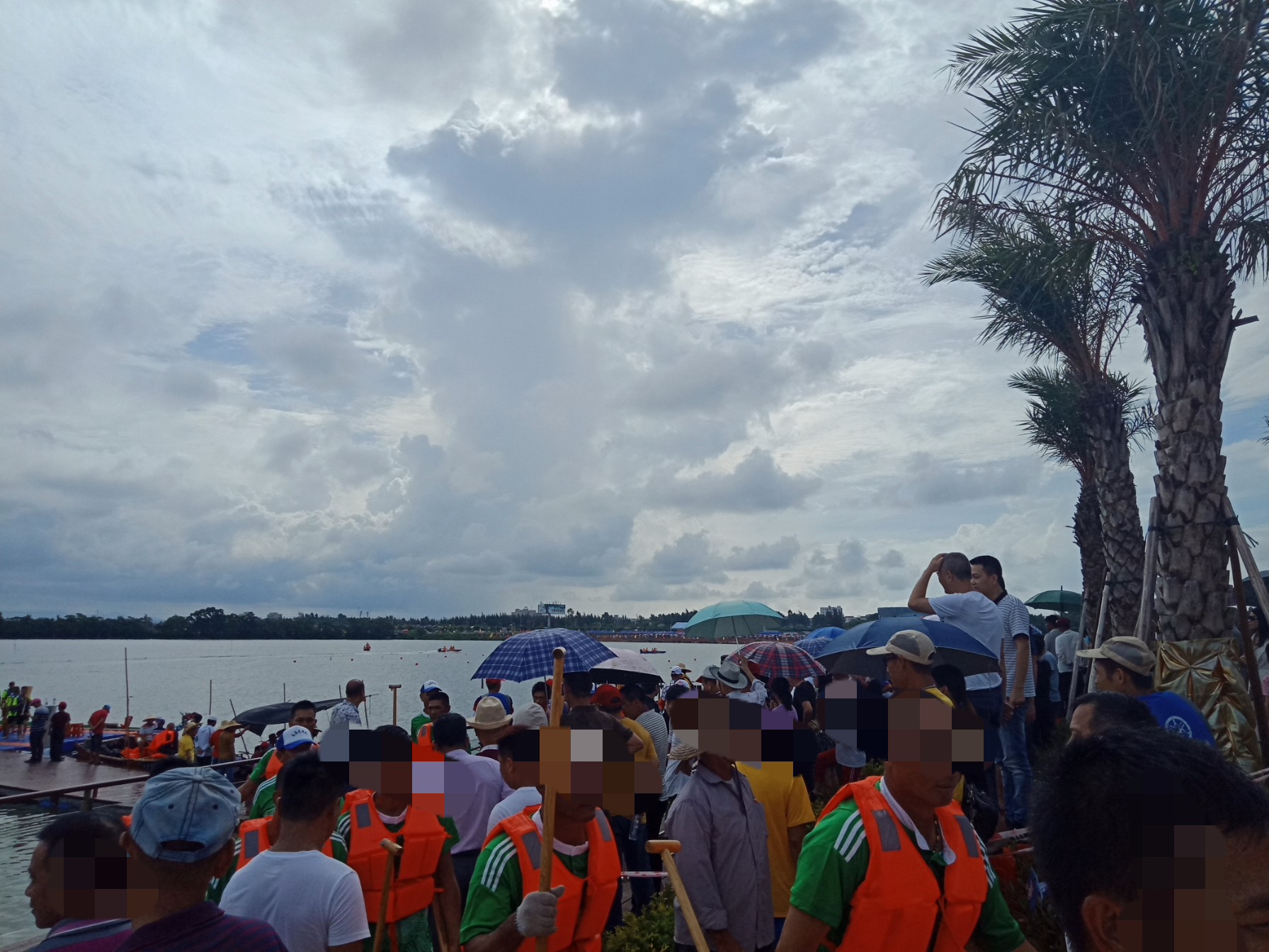 金源置业~2018茂名水东湾龙舟邀请赛~今早,在外面吃了点白粥送菜头,后驾摩向桥头方向墨胶,水东湾歌美海进发~哇塞,车都停到这边,貌似临时管制,车已不能进入公园,只好在附近稳个地方放好摩托~人算挺多,不过有公安交擎安保,志愿者等工作人员 分段维护进出,还行吧,需今天天气还好,太阳不晒,但声说声辛苦啦!因或许人太多,分段管制,也没能更进一步接近中心地带观看台(将就吸吸、),但在四周看去,能看到龙舟与能站人的地方都貌似见站满人?或有空中无人机更清楚清晰?貌似9点钟左右才开始~直至接近12点~