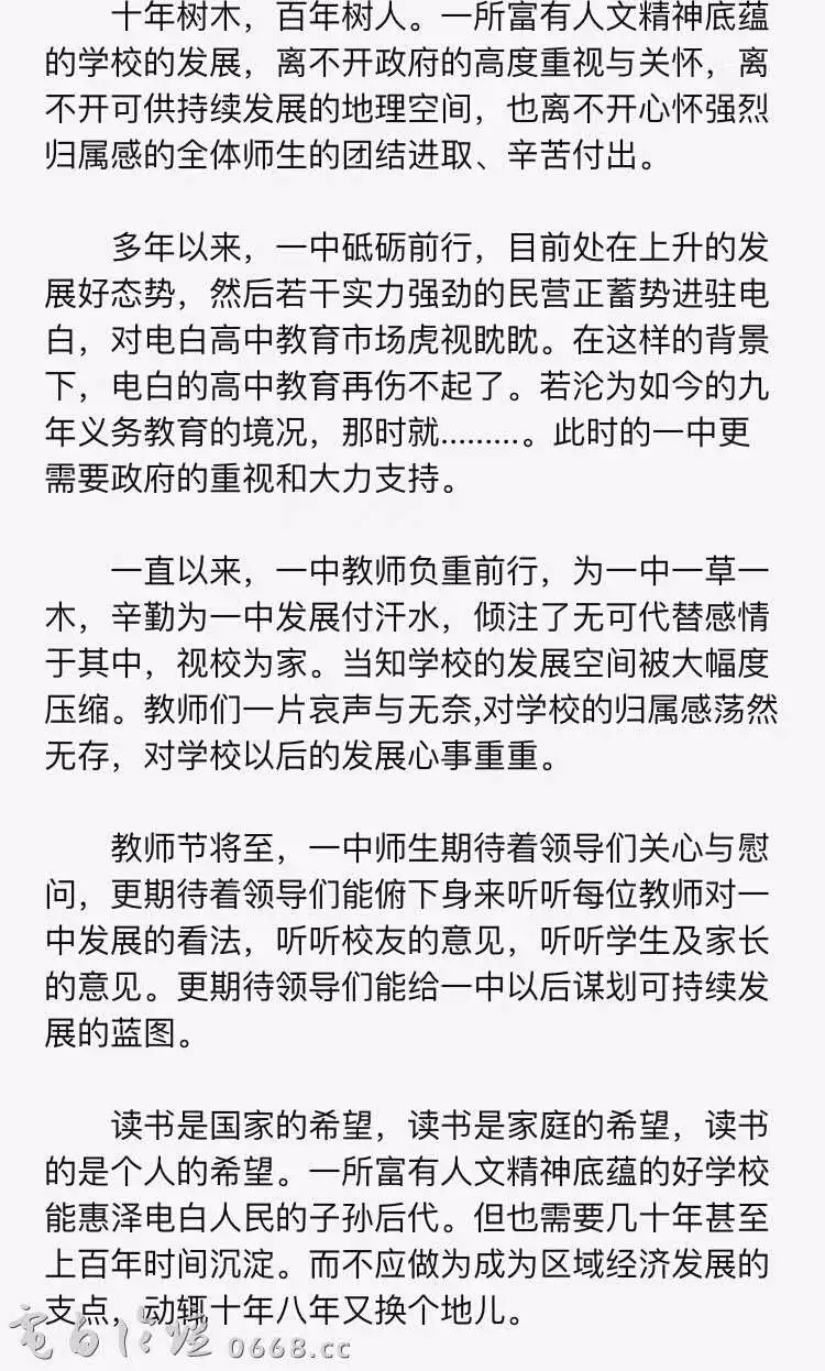 电一中的师生还是有骨气的,支持你们!!!真是想不到连电白最高学府被弄成这样子 ,电白教育出路何在?原创作者:热爱一中的学子 守恒说