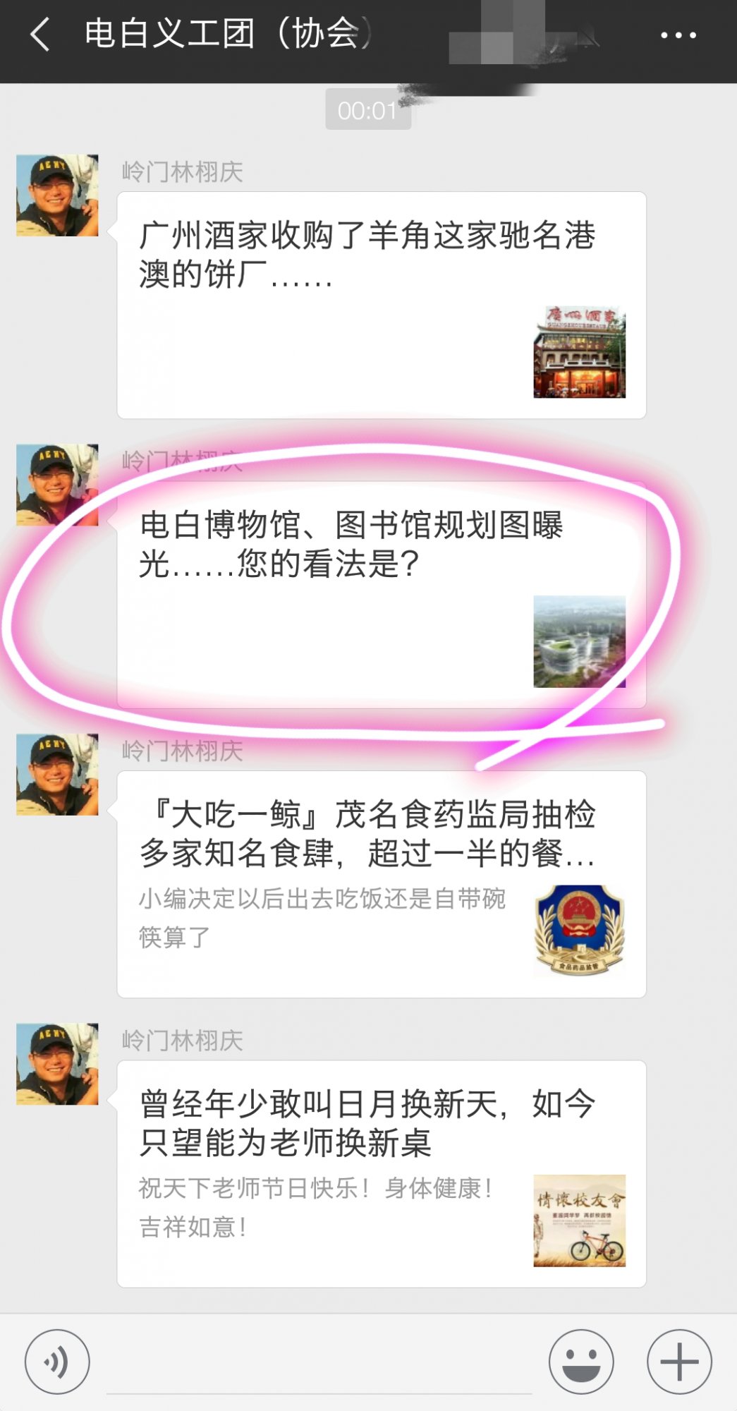 这几天电白一中事件那么轰动,作为一个有血性的电白人都应该为电白一中助力,保卫校园,捍卫电白人尊严。而一向喜欢在义工群宣传公众号发推文的电白人论坛这几天屁都没敢支一声,刚才凌晨时分我打开微信看到群内有信息就点开一看。一连好几篇推文发了出来,其中夹扎着一条一中建馆调查的,看来故意这样掩人耳目啊,你他妈的电白人论坛不但不帮电白一中,还想继续坑害电白一中是吧,你们还是电白人吗,简直就是狗汉奸。