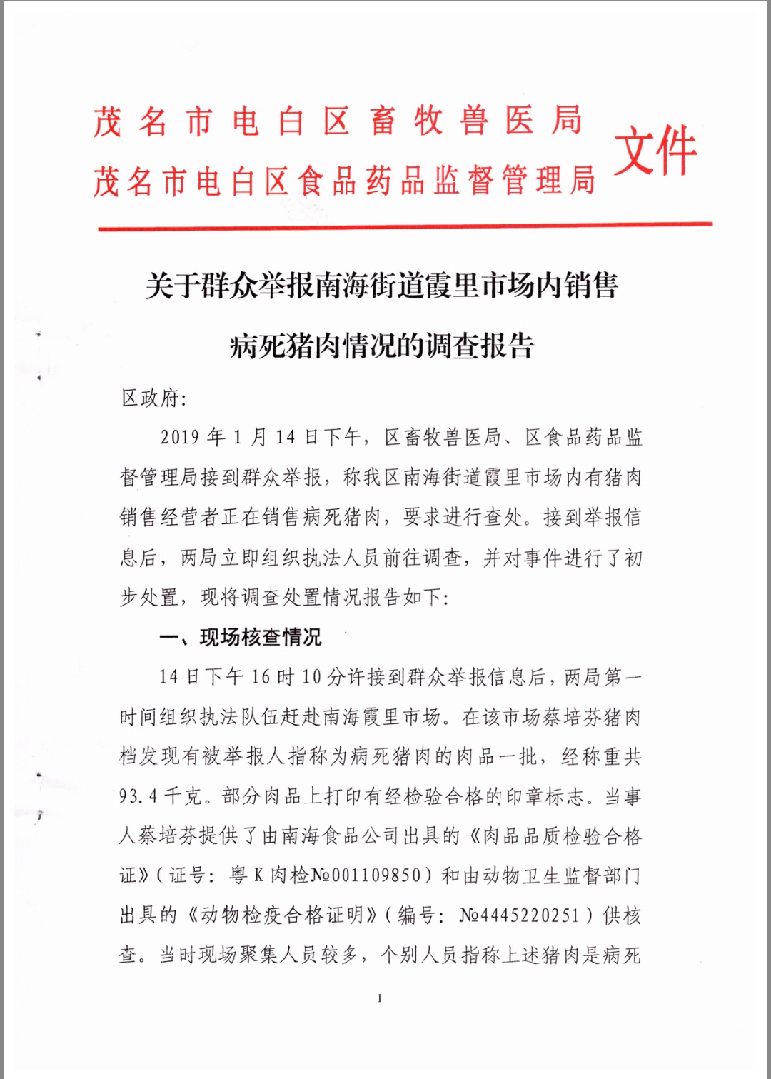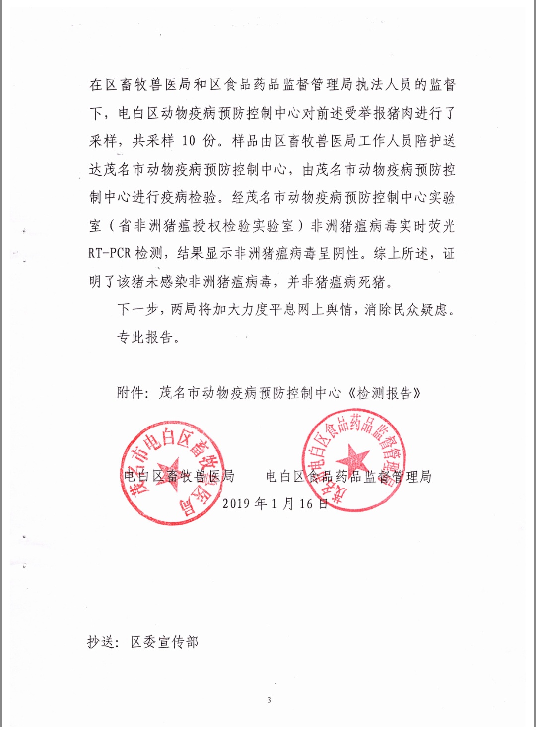检测报告只能说明这头猪不是感染非洲猪瘟病毒的,不能证明全部问题吧。