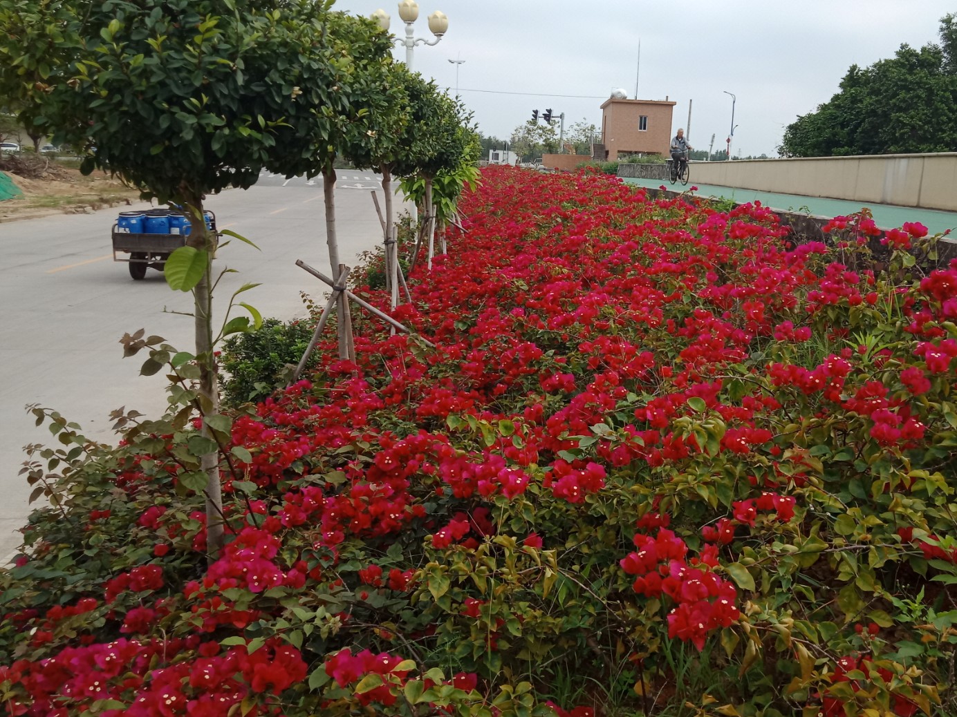 瓦为何会发这呢,当时途经时在碧道上,见有一男真的用单车搭着个女的向海滨大桥那边踏去(诂是在附近工地干活的?),当时驾摩在下面,看着花开与上面骑单车两人,心就想拍下了,可惜放好摩托,并想及时拿出手机拍下,可惜他她们已骑着单车走到那边尽头了~