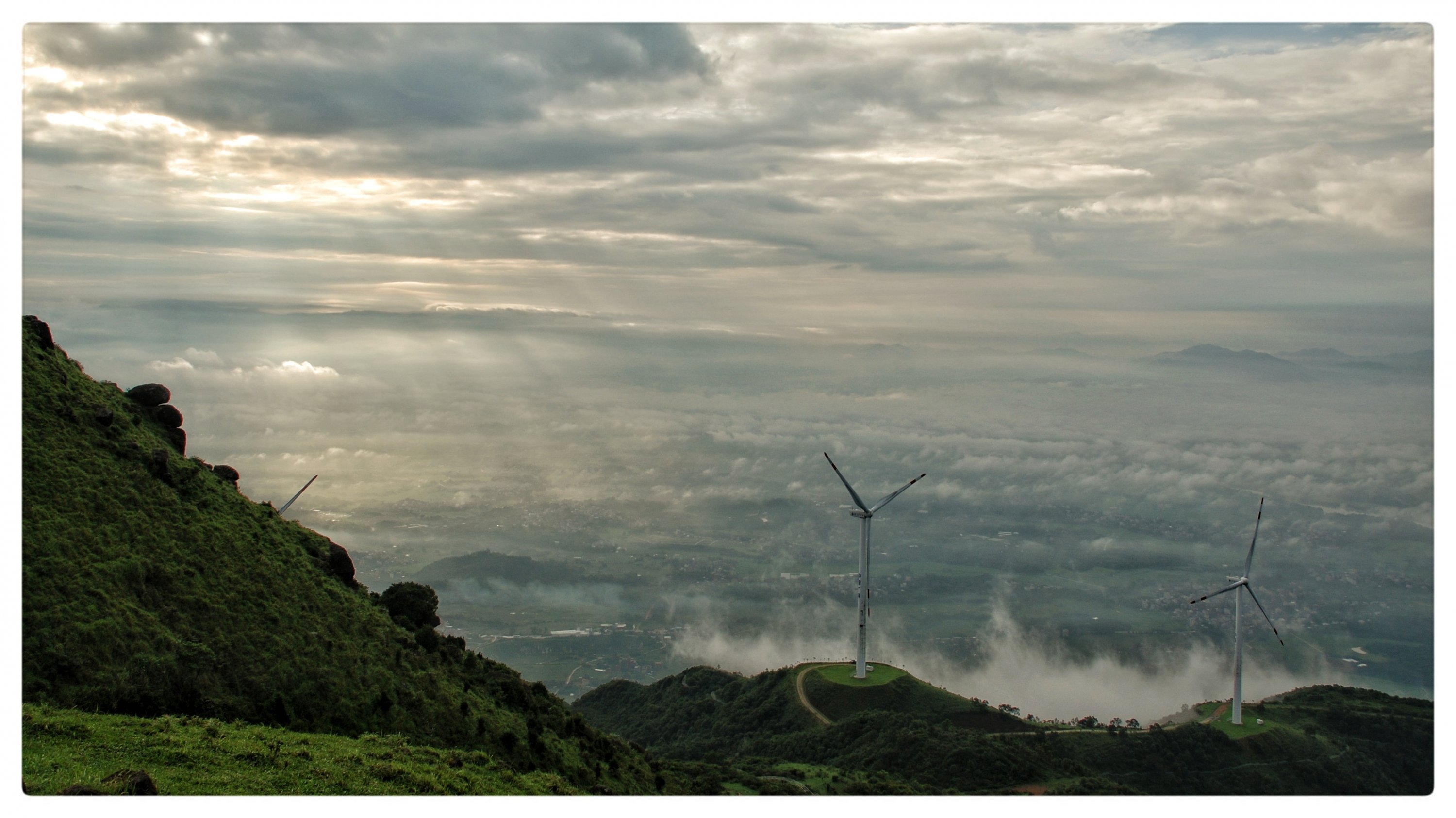 圆圆红日,滚滚云海,风车摇转,的确凄美。