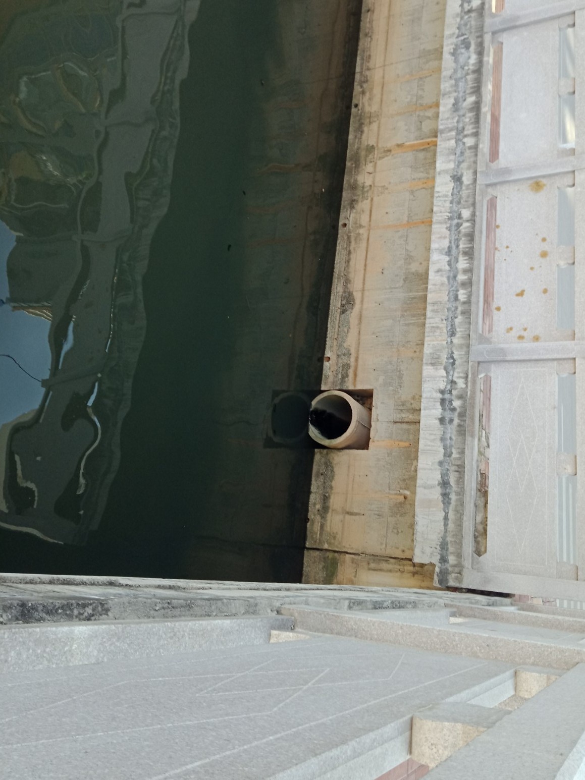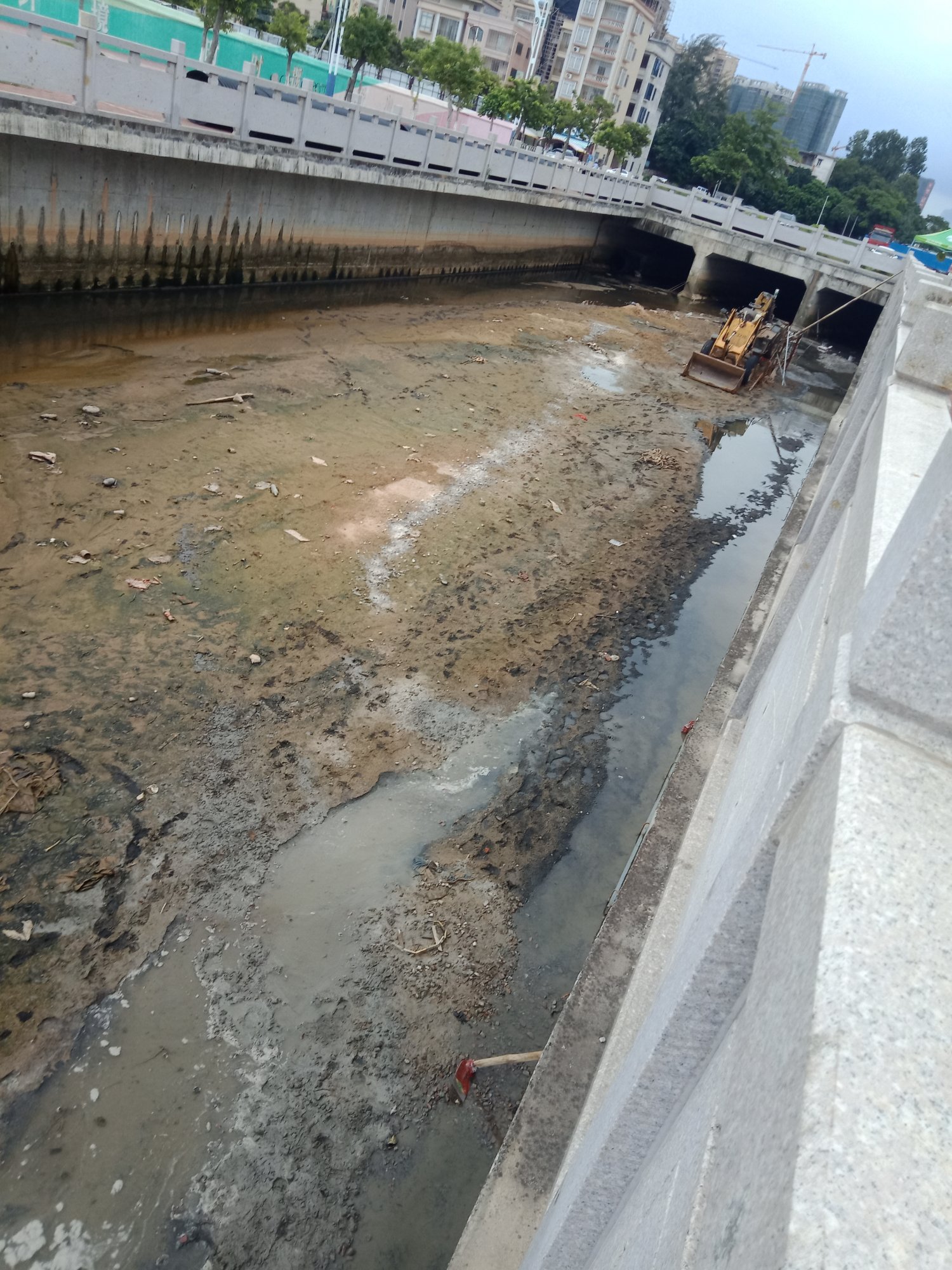 找出排到此处的排污水源臭水体,阻隔堵留引去排污管等,彻底清理河道下面的污泥,此河道底看图,工人站在底下诂是水泥硬底,应容易清理。