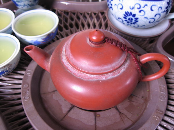90年,当时我们电白喝功夫茶的还不多,是年进深圳某单位时同事大多是潮汕客家人,办公室里的功夫茶就象我们的水烟筒那么普遍,办公室里本来有把壶,可偶然给一同事给砸了,于是自己掏65块买了这个,后来调动,下海就去到哪带到哪,一直用到今天,不知不觉竟也17~18年了~~~!