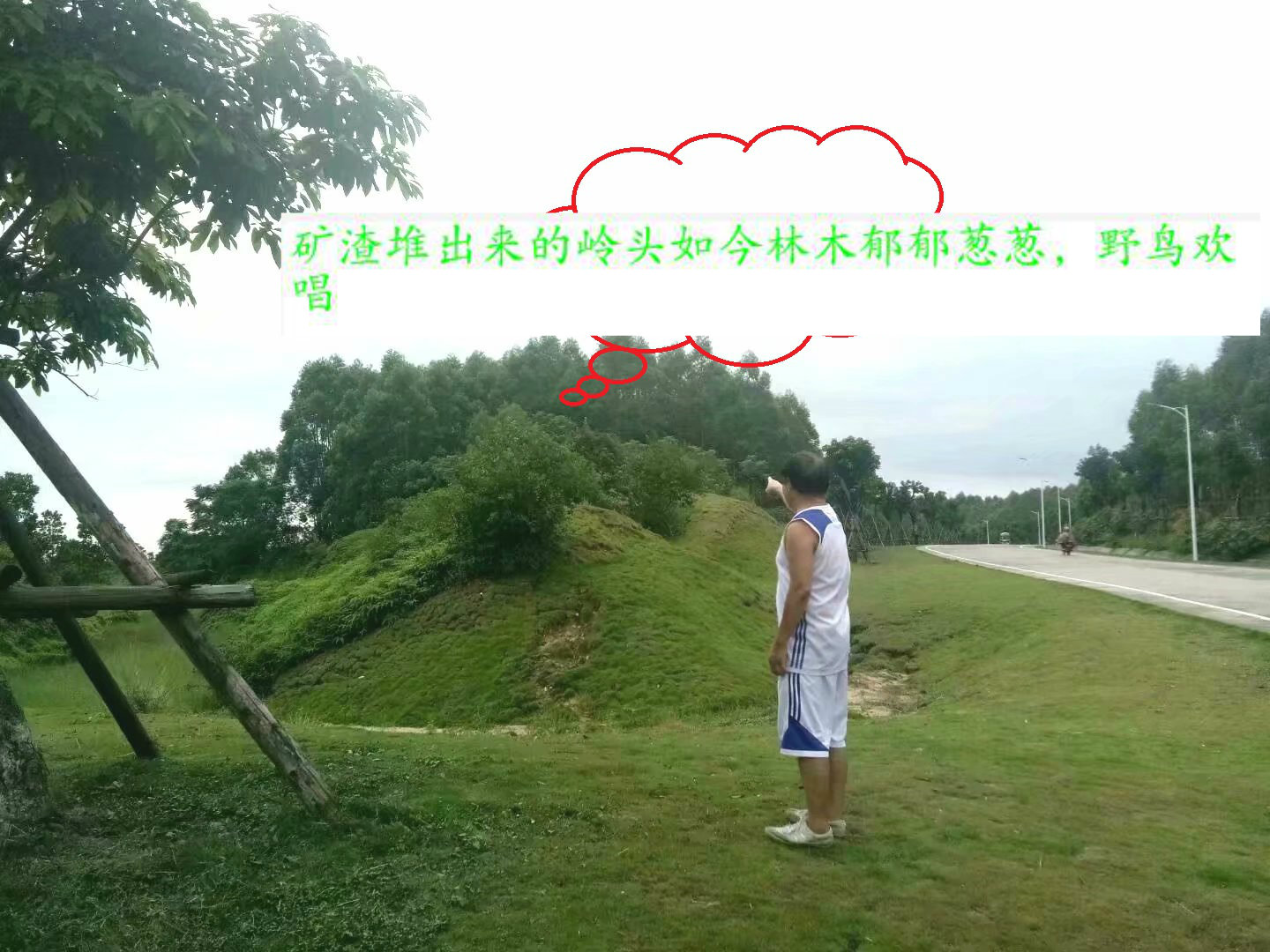 什么叫露天矿,矿在地表上。这座岭头是由一块块大小废矿或者叫矿渣堆起来的,如今被人们进行了了绿化,在矿渣堆上种活了树木,并成为了一片茂密的树林, 鸟在林间叫,让我这只井底蛙感到新奇……衷心赞赞森林科技工作者!