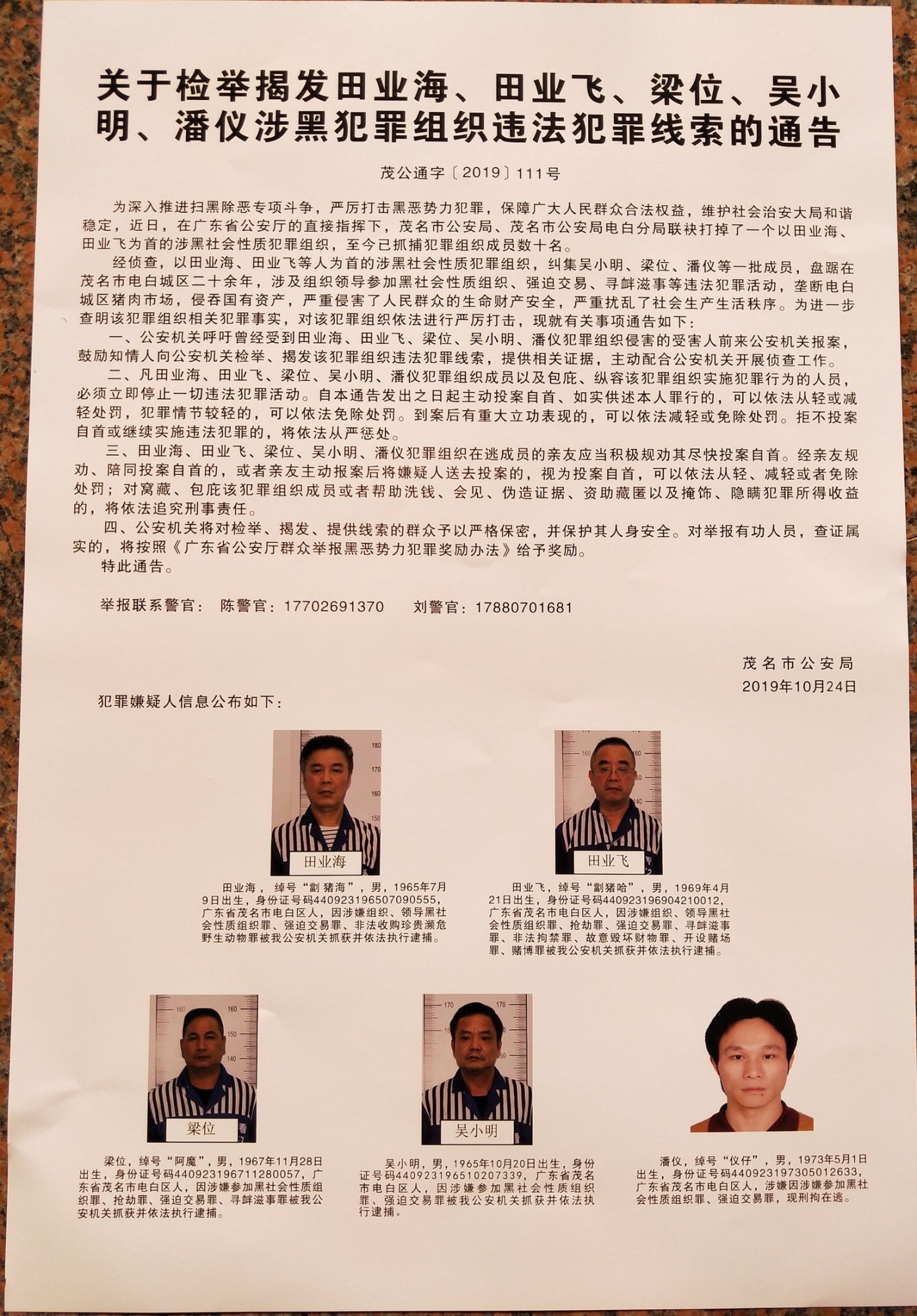 汉鸭 说: 哎呀!看清楚了到目前为止抓了数十名组织份子,人数太多不敢公布还是还有很多逃亡了等到时候抓回来再统一人数公布呢?哈哥有钱麻麻居然有抢劫罪...难道有个人特别嗜好? 点击展开... 路上抢猪肉?