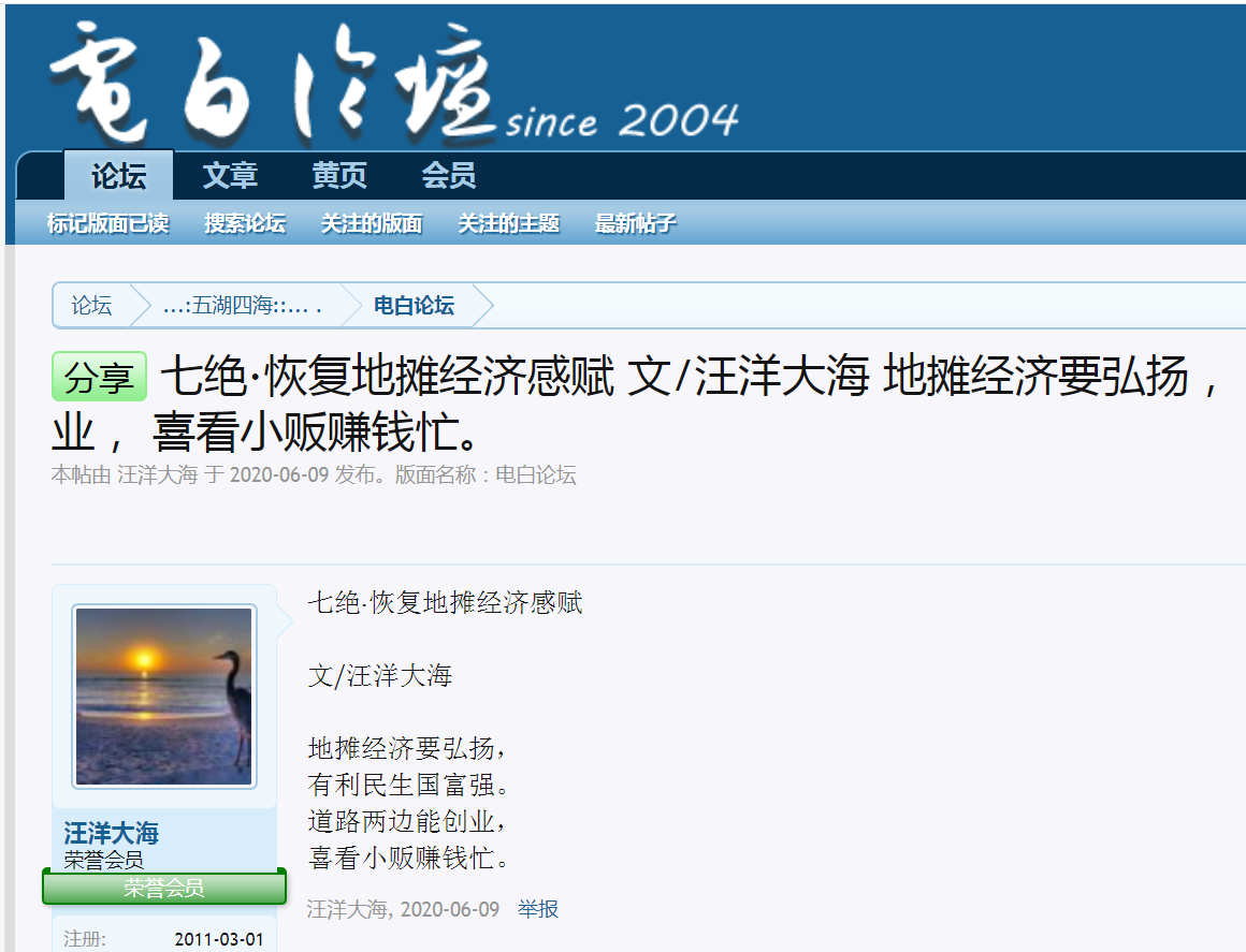 论坛写诗水平,汪副会长第一,我第二,不服气的当场分高低!