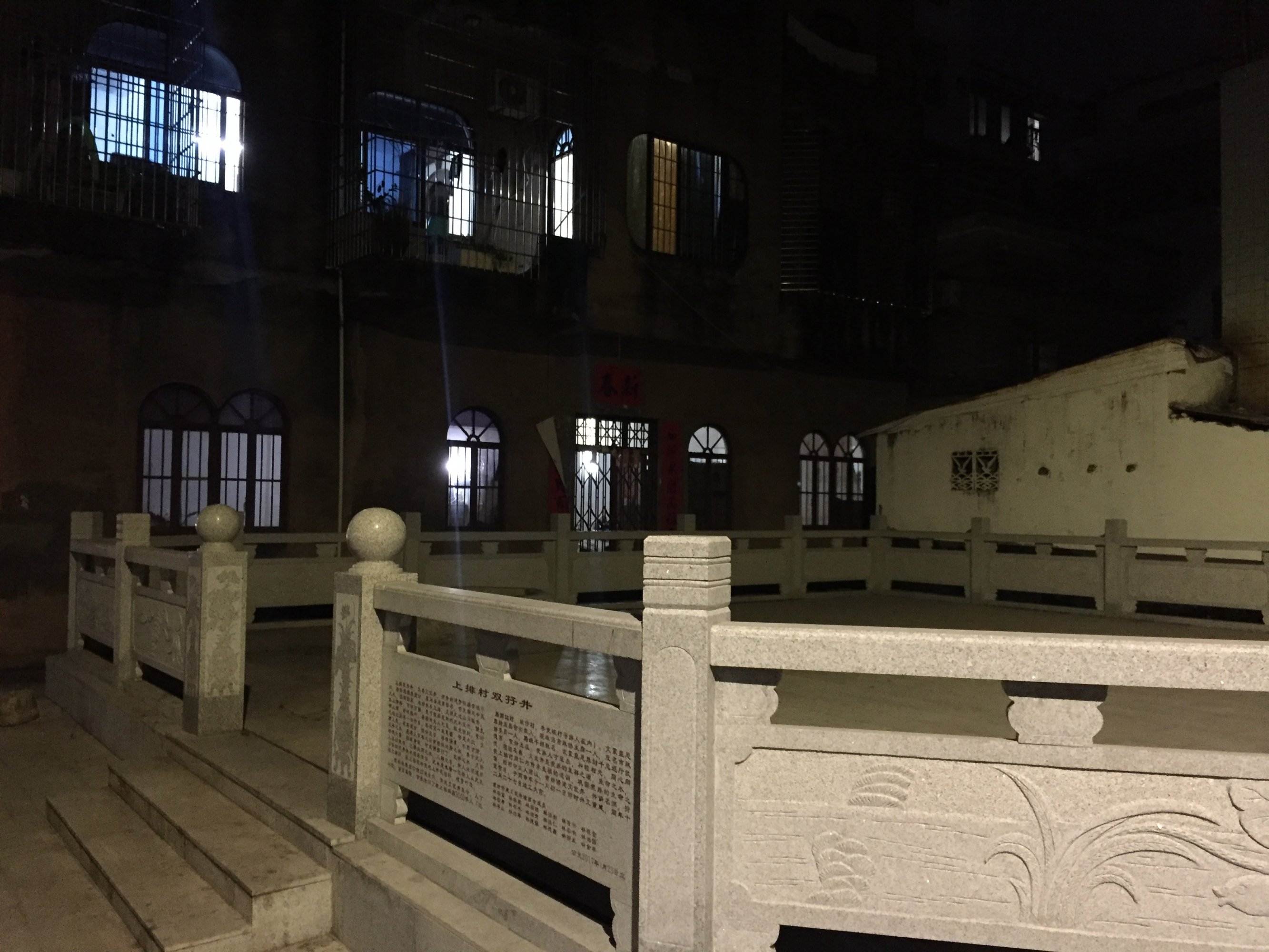 东湖旁边那个村庄的村边有二口古井,叫双孖井,又叫文武井,始建于明朝崇祯年间,当地人保护得很好,用大理石围起来,保护面积有二百几平方,是上排村的生命之水