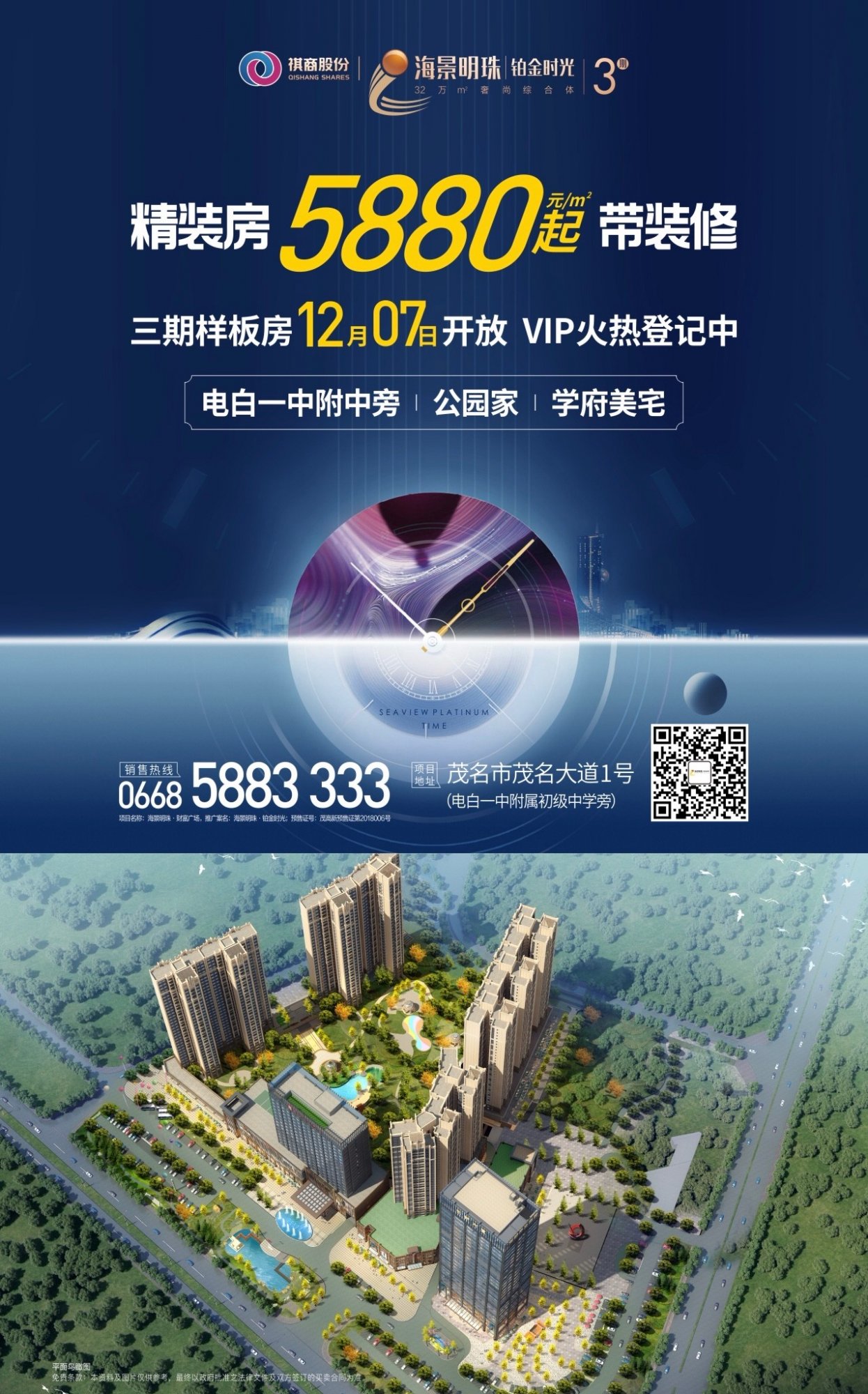分享 海景明珠·铂金时光丨三期样板房12月07日盛大开放,精装房5880元/m²起