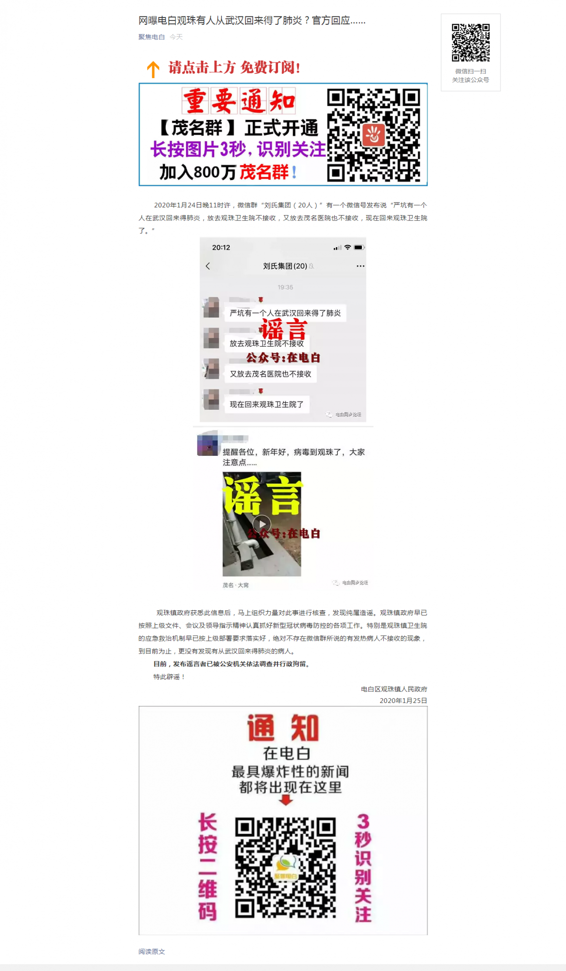 网曝电白观珠有人从武汉回来得了肺炎?官方回应…….png
