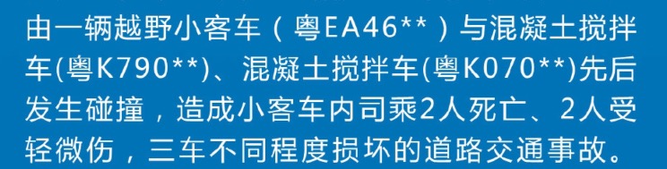 电 电白一中不能少 小学一年级 注册 2018-05-28 帖子 130 反馈评分 27 点数 11 性别 女 2020-03-24 #373 水碧山青 说: 一目了然,过程详细,你这个水平怎样保护一中? 浏览附件340583 小车与两辆混凝车(先后)发生碰撞,注意是先后,先与前一辆碰撞,再与后一辆碰撞 点击展开... 现在公布的通报才讲清楚事故发生的过程!