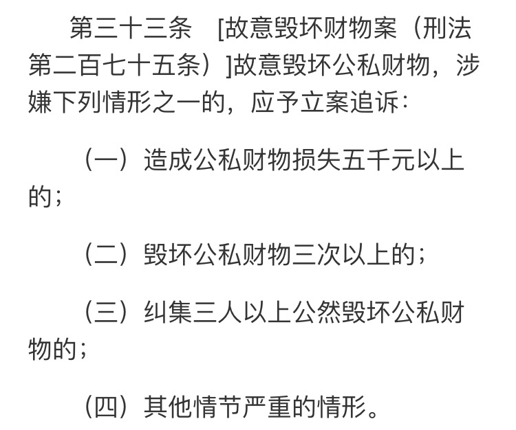 公安机关管辖的刑事案件立案追诉标准的规定(一)