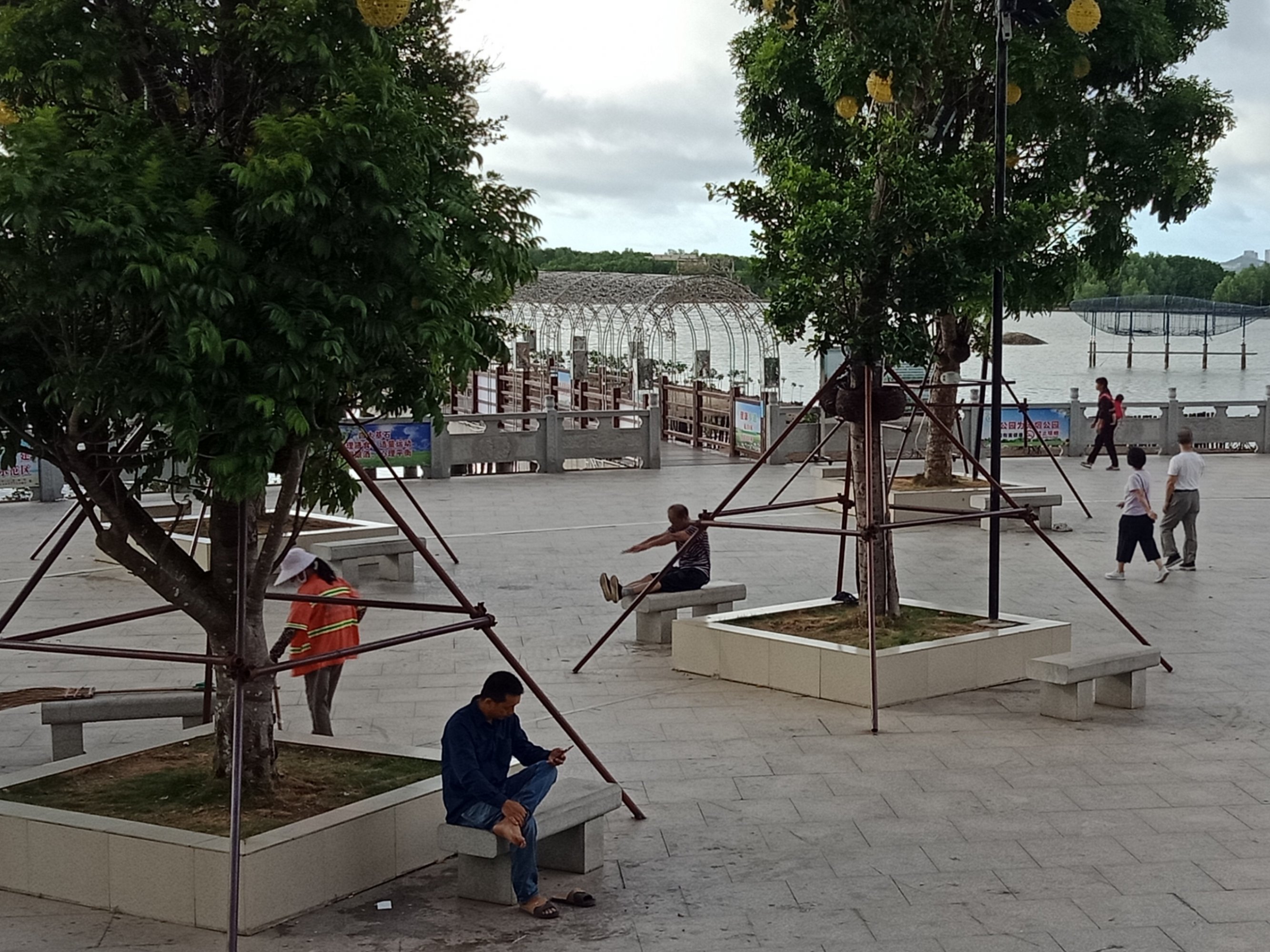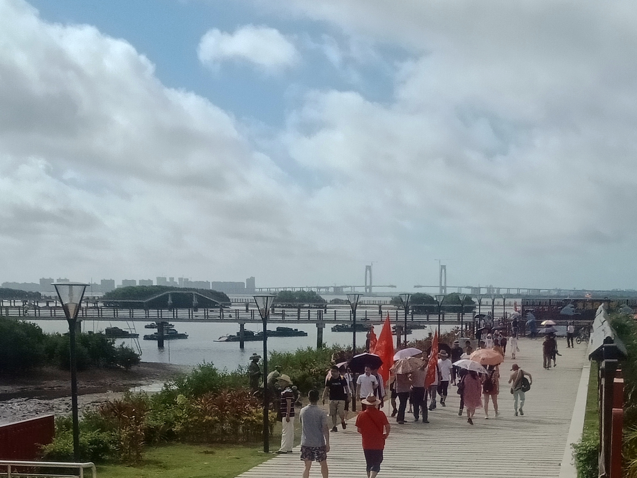那沉香街没走几步就完了,不好,这里起码如果不怕晒,有雨伞走走停停,在中间凉亭坐下,内海风吹来很凉快,真正走完全部全程起码可用个几两个钟或更长点时间?不知有没去过那琴半岛,那个才叫晒,回来后变黑呼呼的,