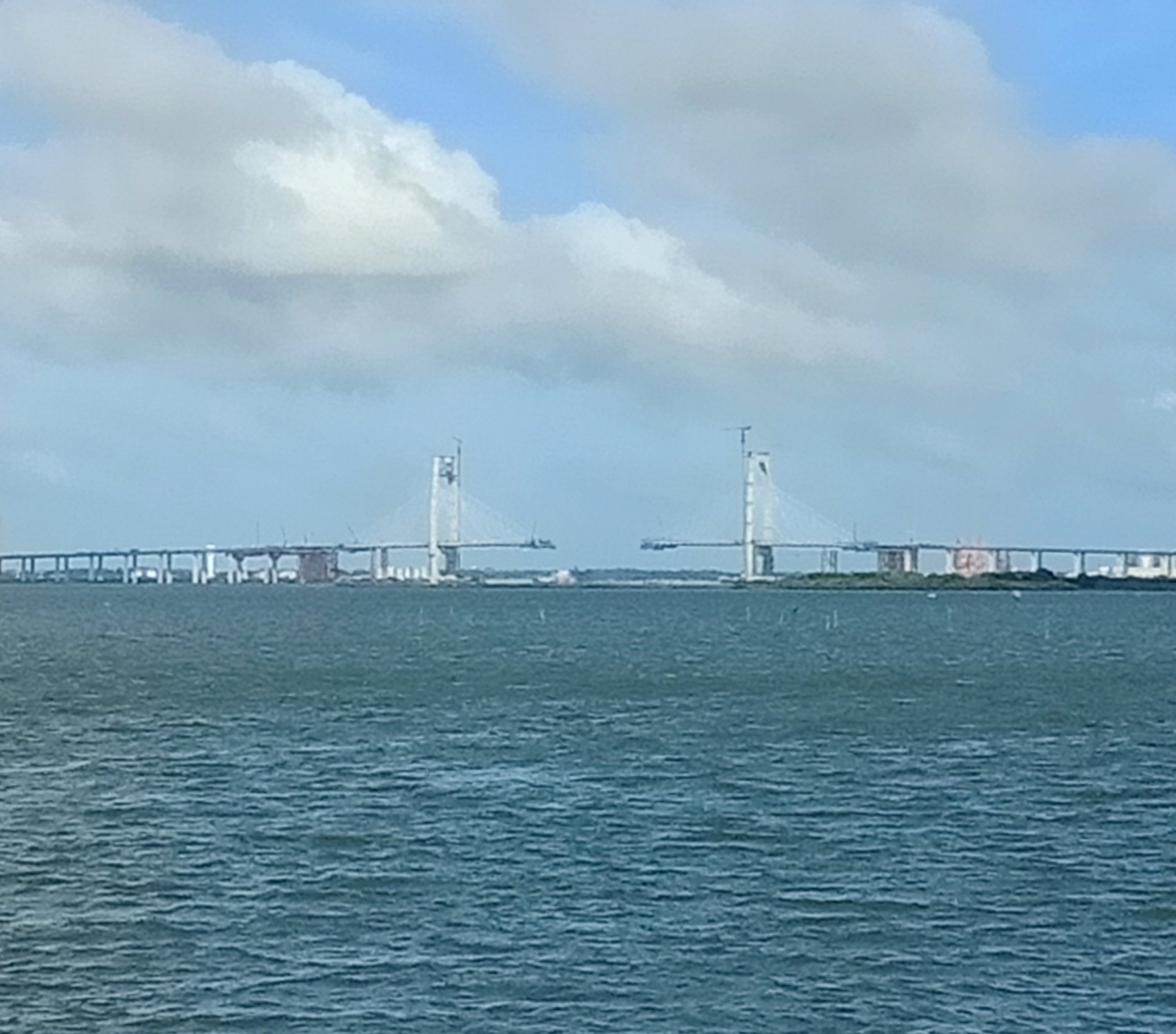 日间远观对面那座水东湾大桥不知如何?而不知那天能连接,而在桥上桥边装饰上灯饰,晚上看过去会是何触角?