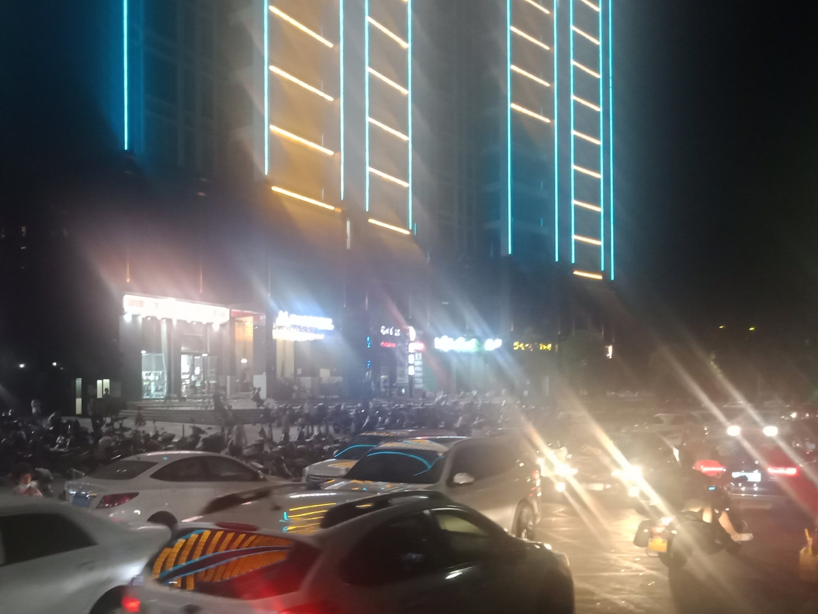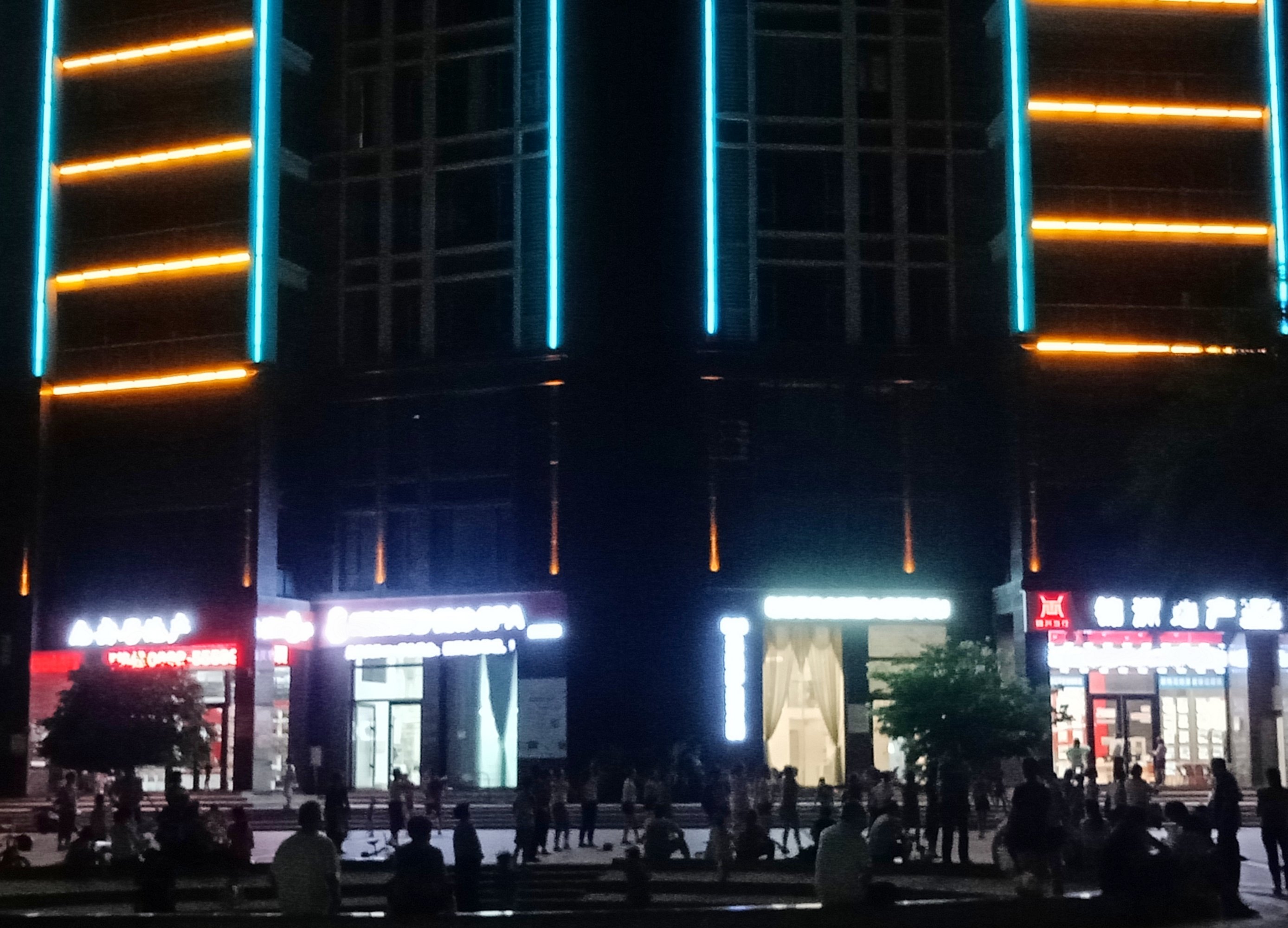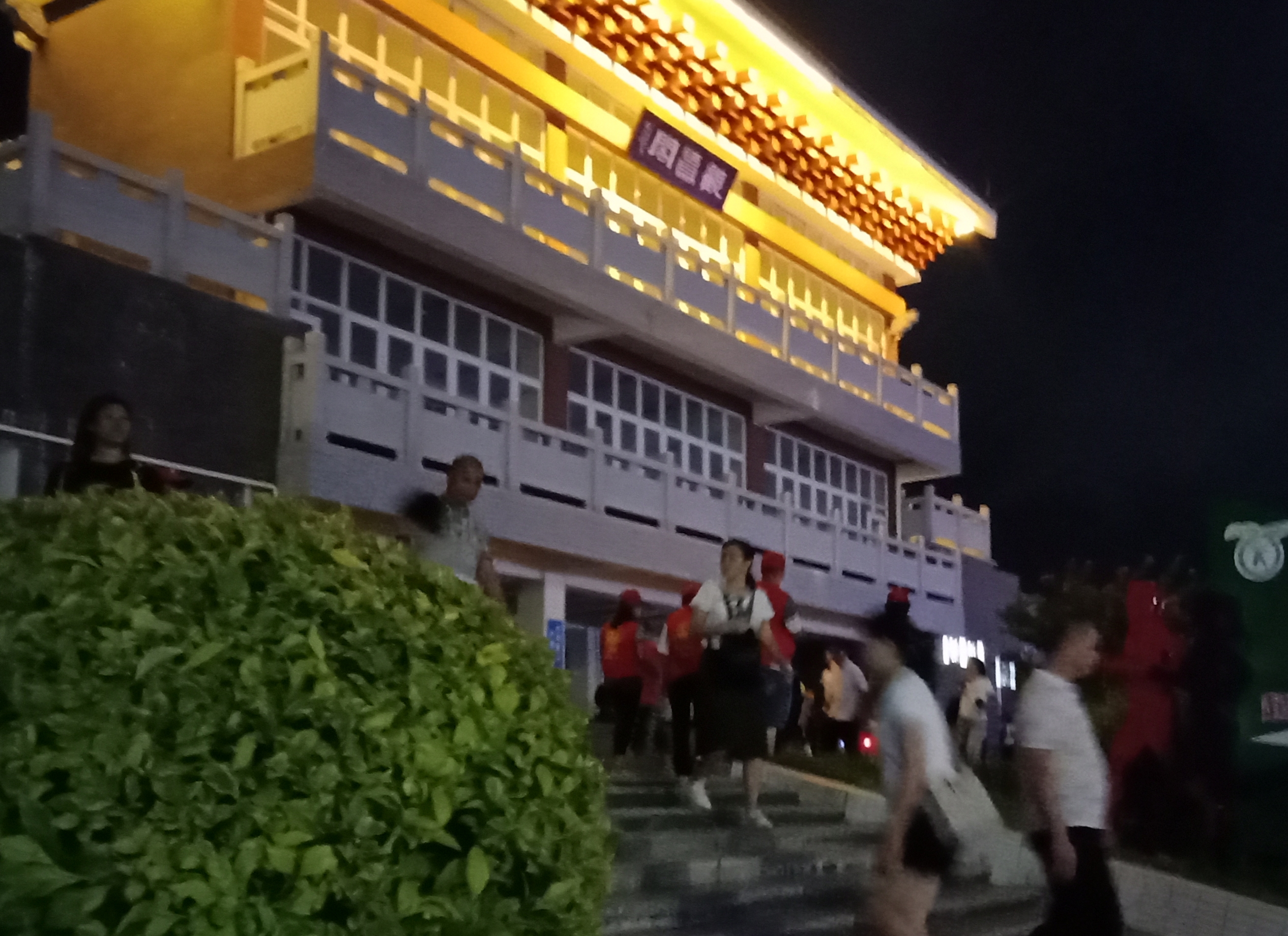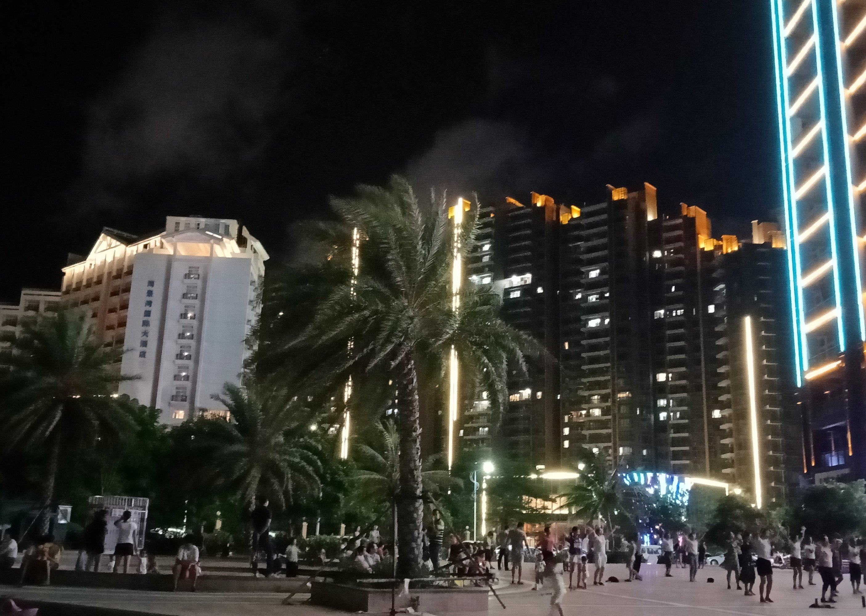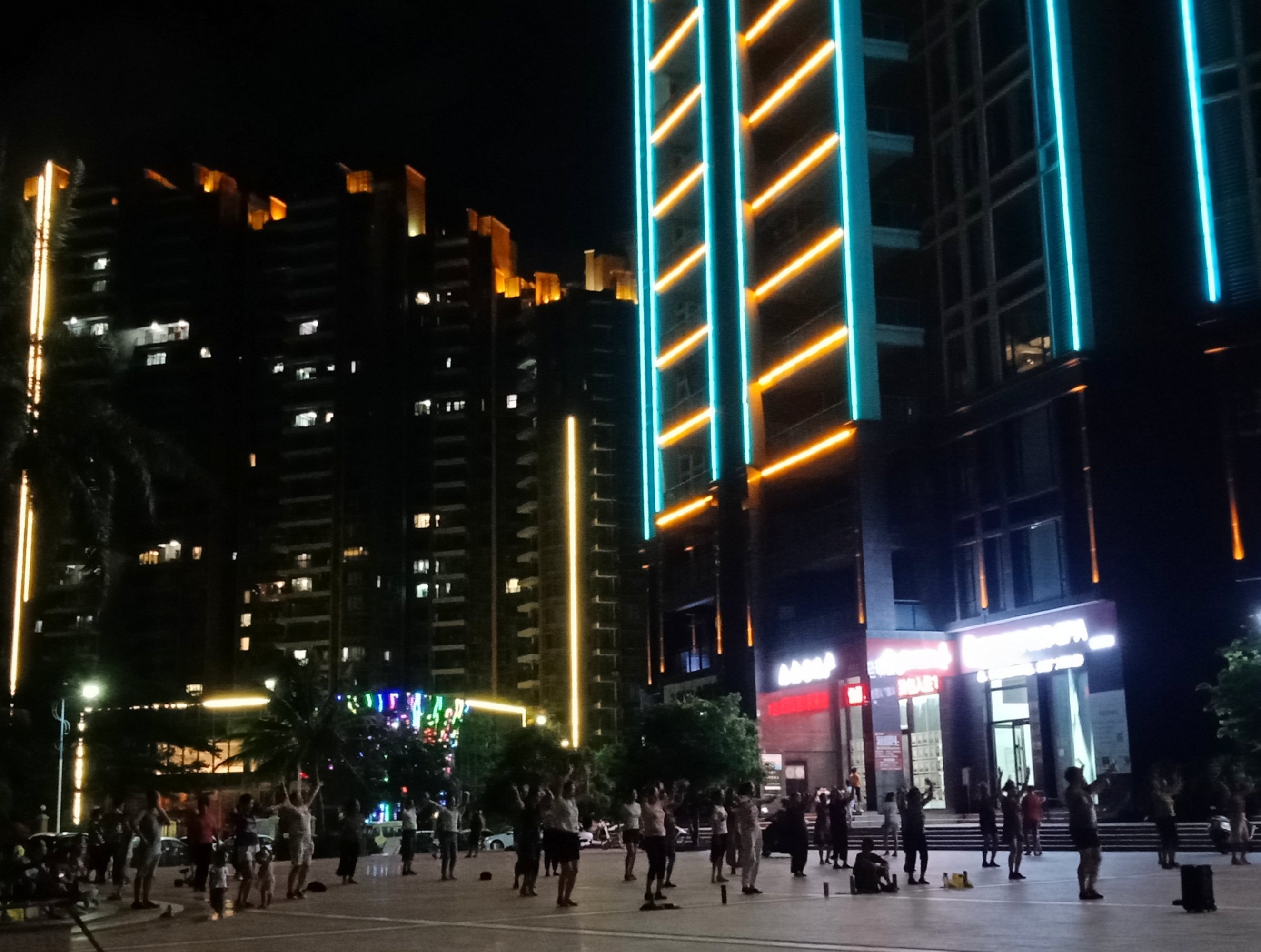 而亲水平台对面这广场也有一群广场舞在跳舞,