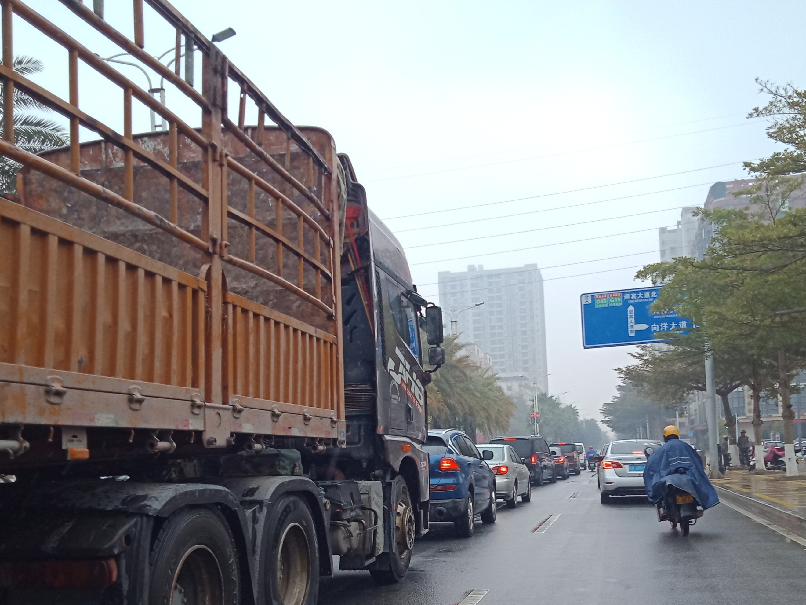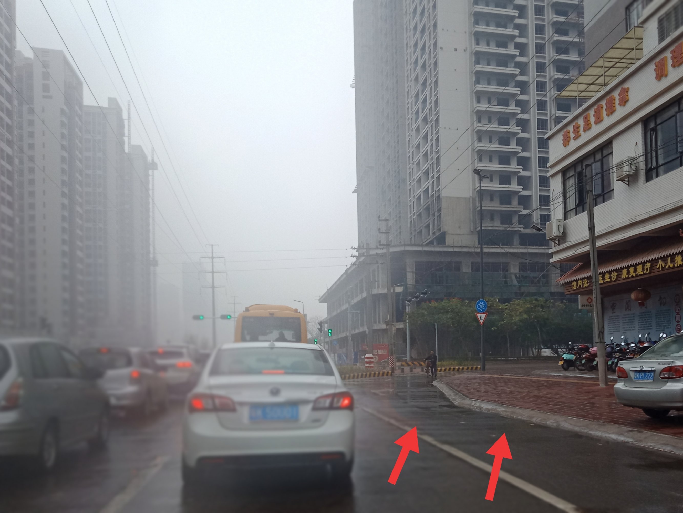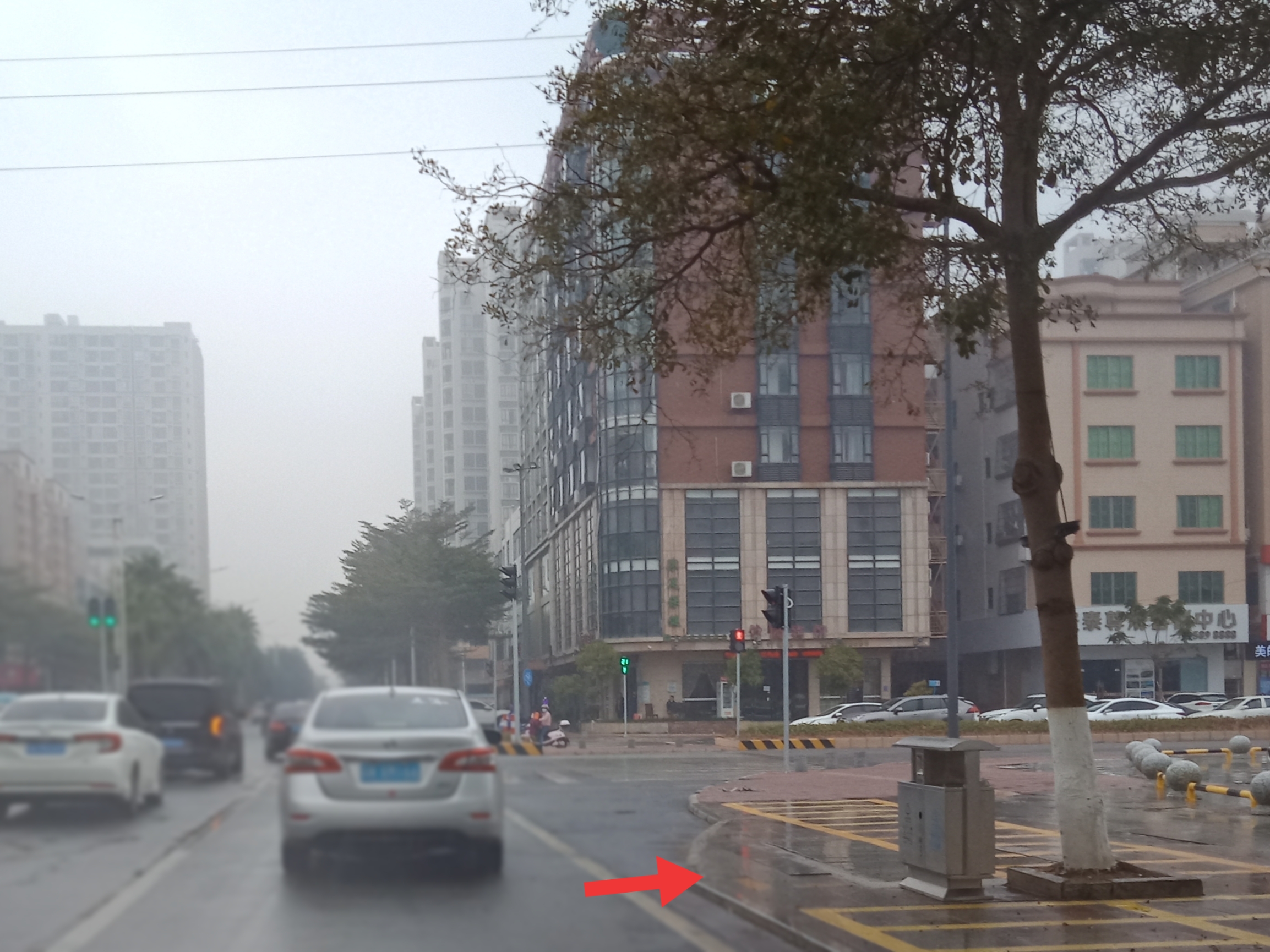 竟然这里已安装交通灯并启用,但不知这里有没有余留有右转专用道?想右转的车也只能在这等直走右转放行的交通灯,