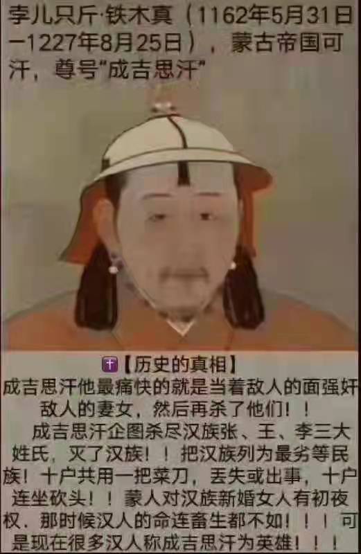冬 冬阳 初中一年级 注册 2017-05-17 帖子 430 反馈评分 97 点数 11 性别 男 2021-10-22 #473 胡汉三 说: 浏览附件352284 你说得有点像被强盗强奸后说,是我把他的衣服脱掉的。生下个儿子认贼做父。 点击展开... 我回答你元朝占领中原后由游牧生活转变为农耕生活,汉化了。难道这一说法不是真的吗?怎样在你看到我这个回答就变为"强奸、生下儿子认贼做父"的说辞了,真是乱弹琴。你可以直接说成吉思汗屠杀汉族人,是汉族的仇人,但这又是另一个话题了