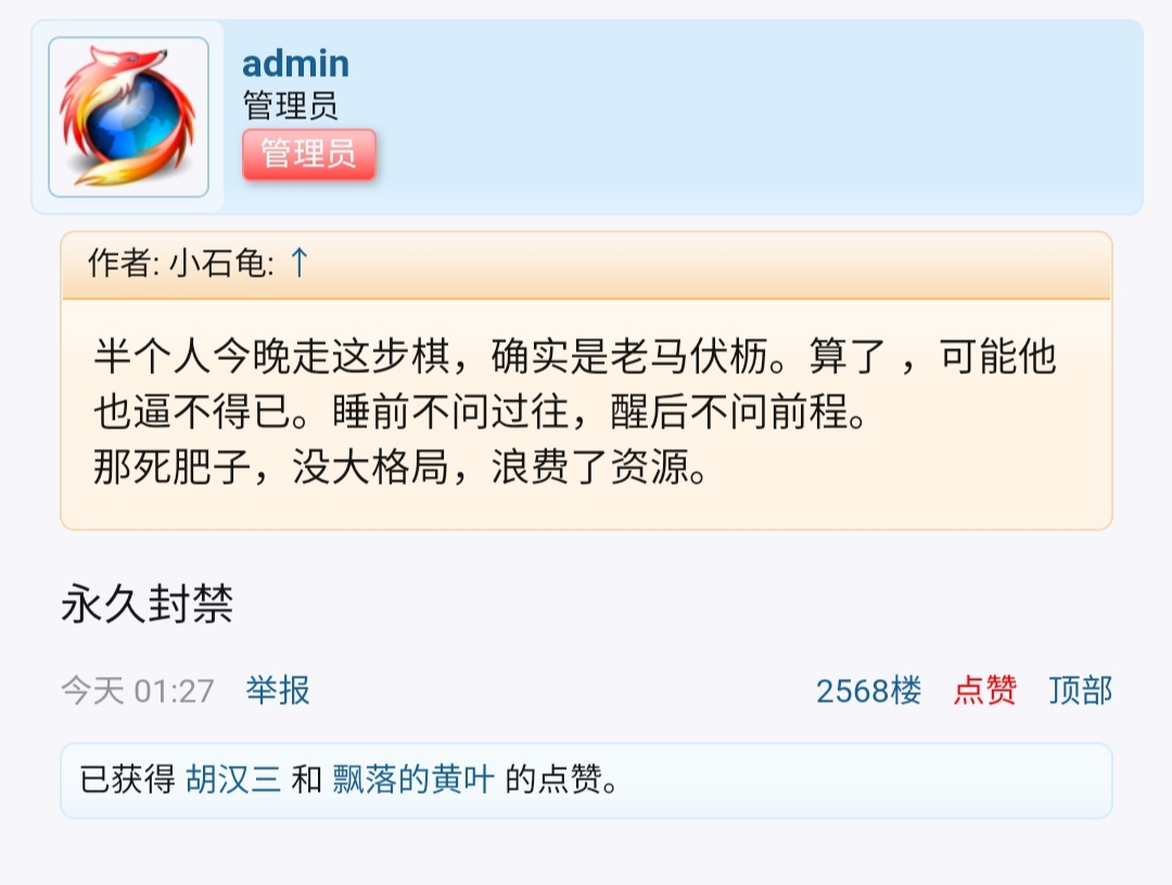 因此,自食苦果!我非落井下石,对管理员叫嚣,对人家一点不尊重。