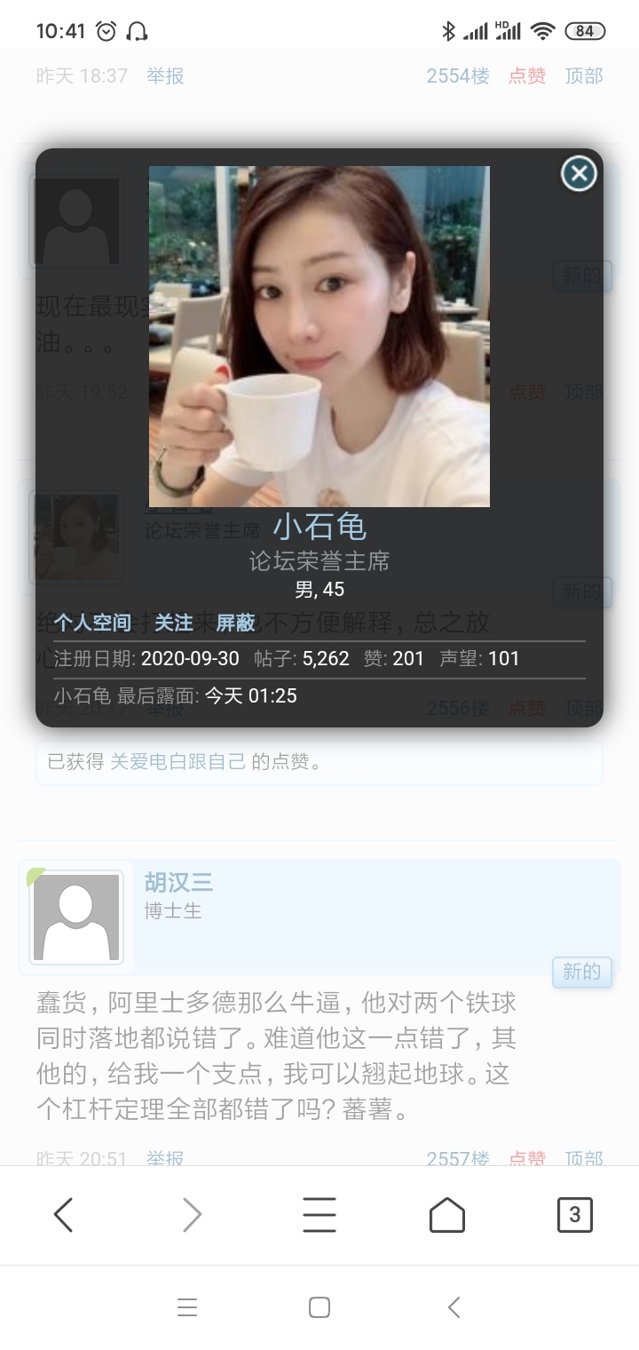 窃·格瓦拉 荣誉会员 荣誉会员 注册 2018-04-09 帖子 3,114 反馈评分 804 点数 191 2021-11-05 #60 行来行去 说: 他自寻短见了吧! 一早起来看见隔离罪锁帖了! 他还有不少号的! 点击展开... 管理员已发话全面封锁他小号,所以我早前就发帖奉劝各位文明交流,不要随意粗言秽语。