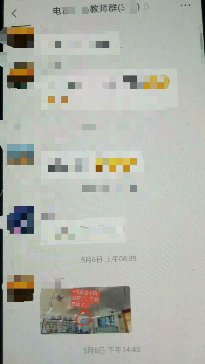 琅 琅江情 幼儿园 注册 2021-10-23 帖子 20 反馈评分 1 点数 0 年龄 42 2022-01-15 #24 大家看一看,下面图片一句话,在不同微信群发现拍下来,讨论一下,是对或错呢? 这句话是: 一9班这个风扇坏了,不能转动了。 最后编辑: 2022-01-15