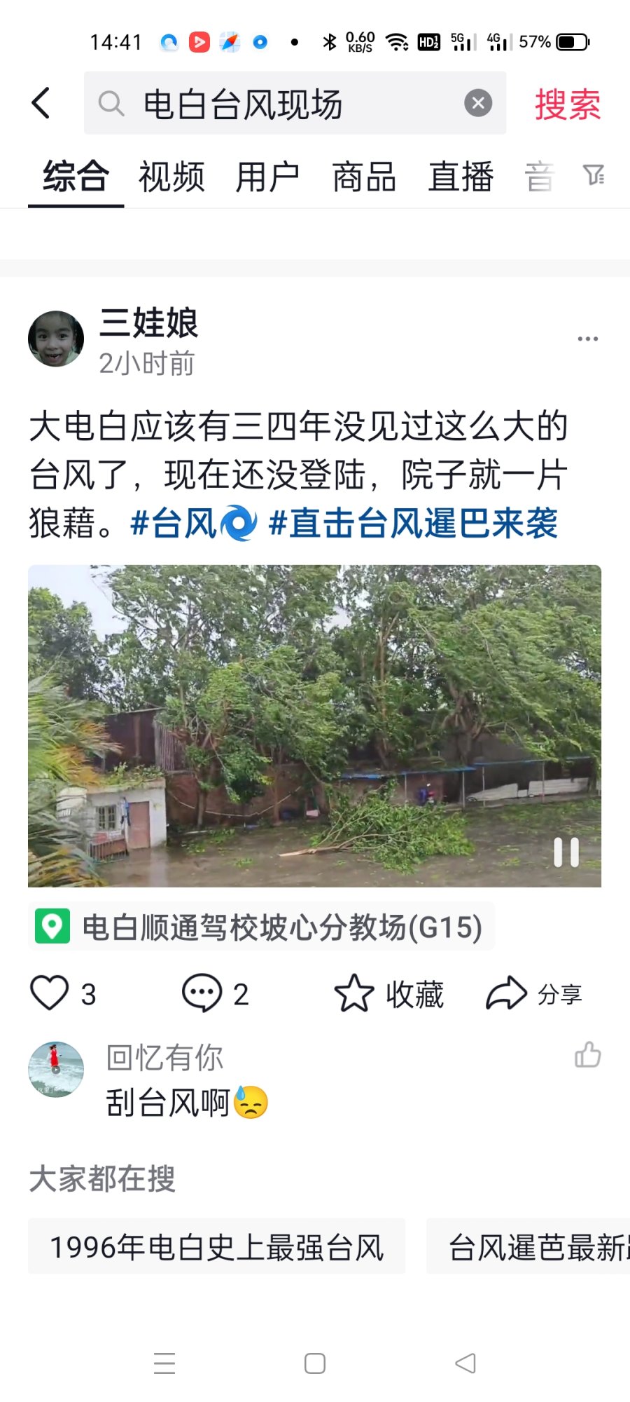 上午经过小良至中德一带,暴雨夹风,路中偶有桉树仆倒,车顶有树枝跌下扑扑作响,一口气开车回屋,关门避险。 对于冒风雨拾柴保一路平安的清路工谨致以五十六个赞,并提醒一定要注意安全! 估此次风胎对于吴州至电白小良沙院南海水东等地有好大的流弊。